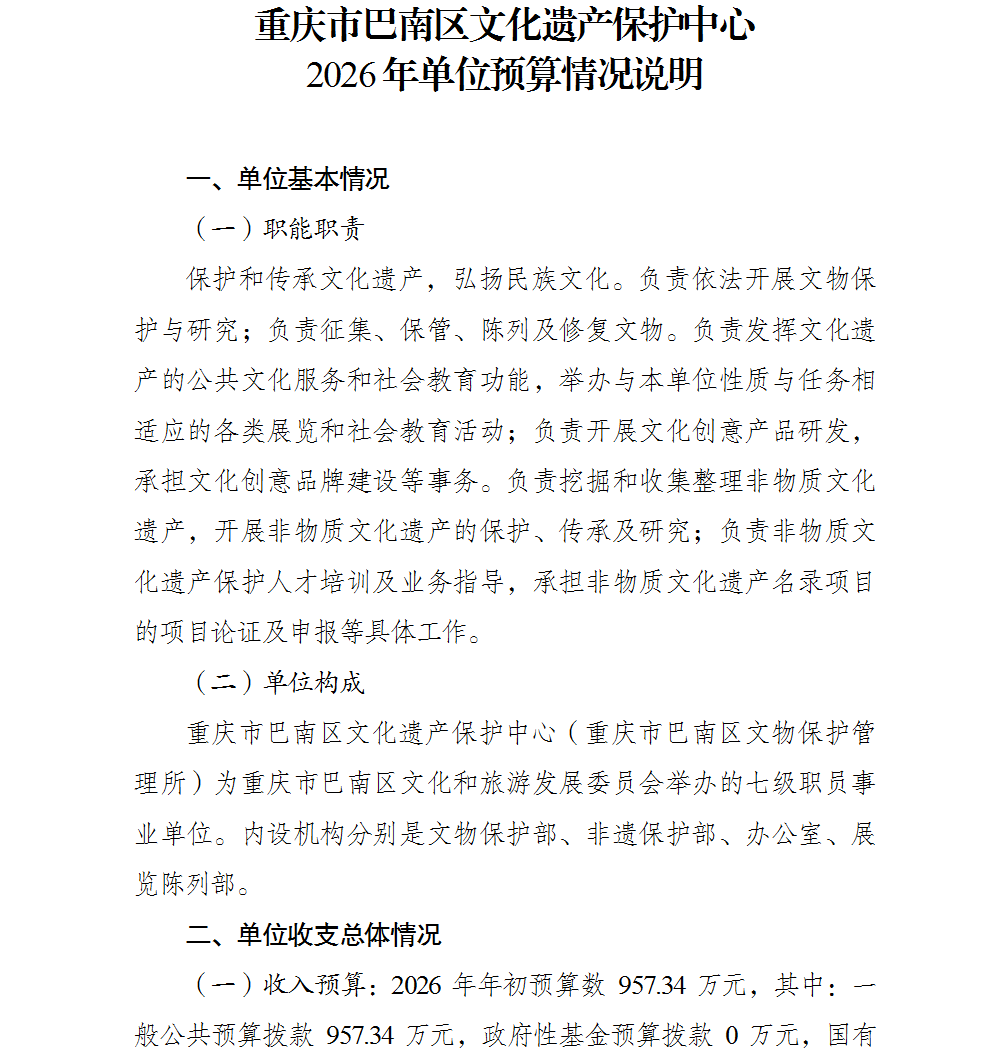 重庆市巴南区文化遗产保护中心2026年部门预算情况说明