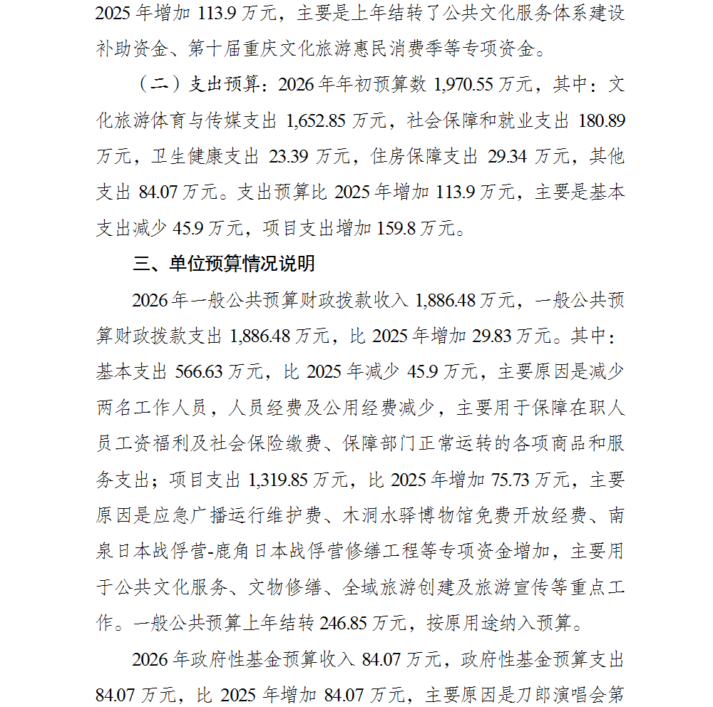 重庆市巴南区文化和旅游发展委员会2026年部门预算情况说明(本级))