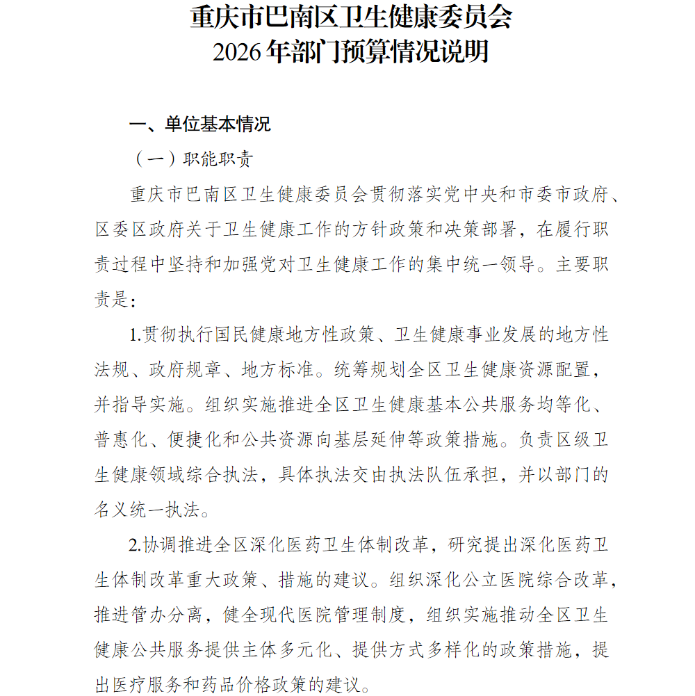 重庆市巴南区卫生健康委员会2026预算情况说明