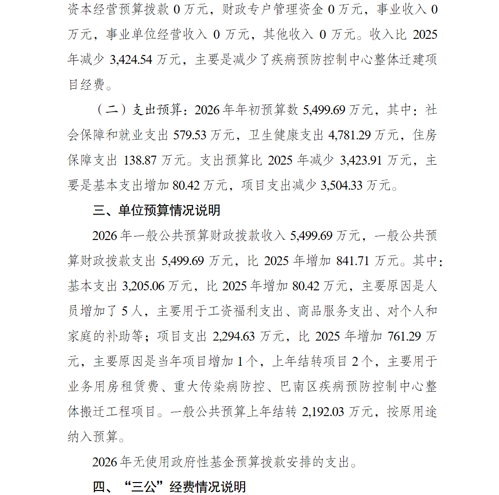 重庆市巴南区疾病预防控制中心2026预算情况说明