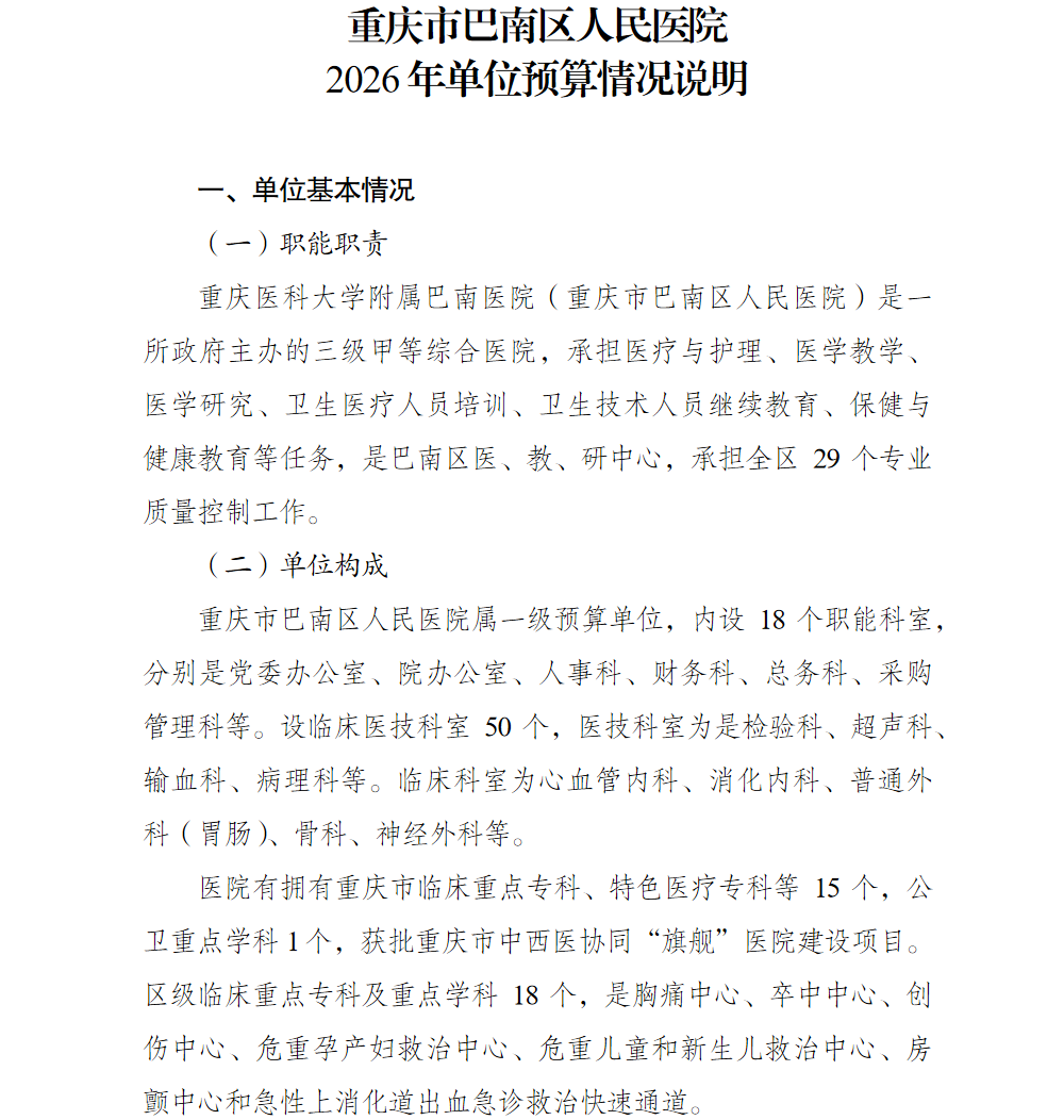 重庆市巴南区人民医院2026年单位预算情况说明及附表.pdf