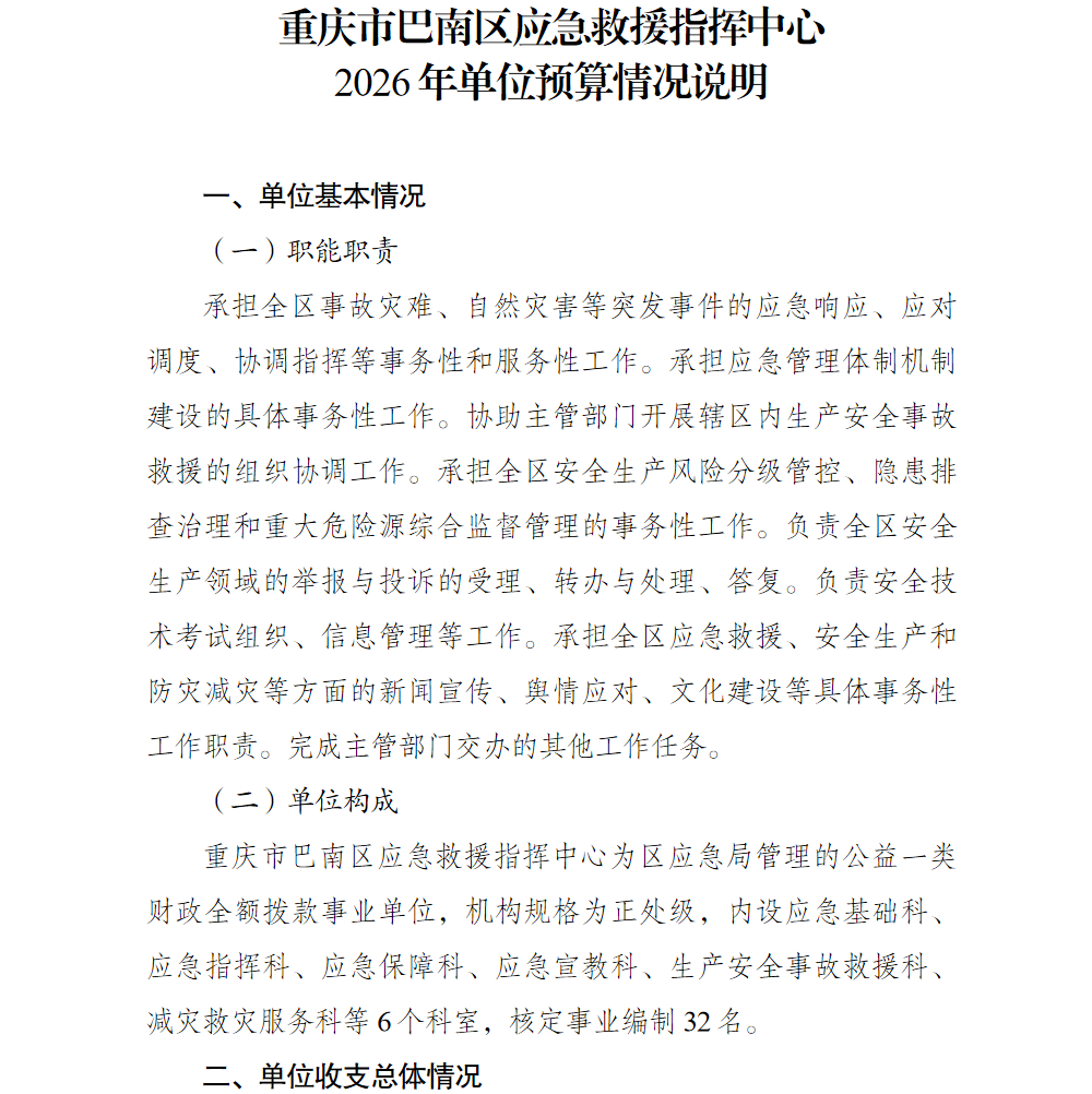 重庆市巴南区应急救援指挥中心2026年单位预算情况说明及附表.pdf