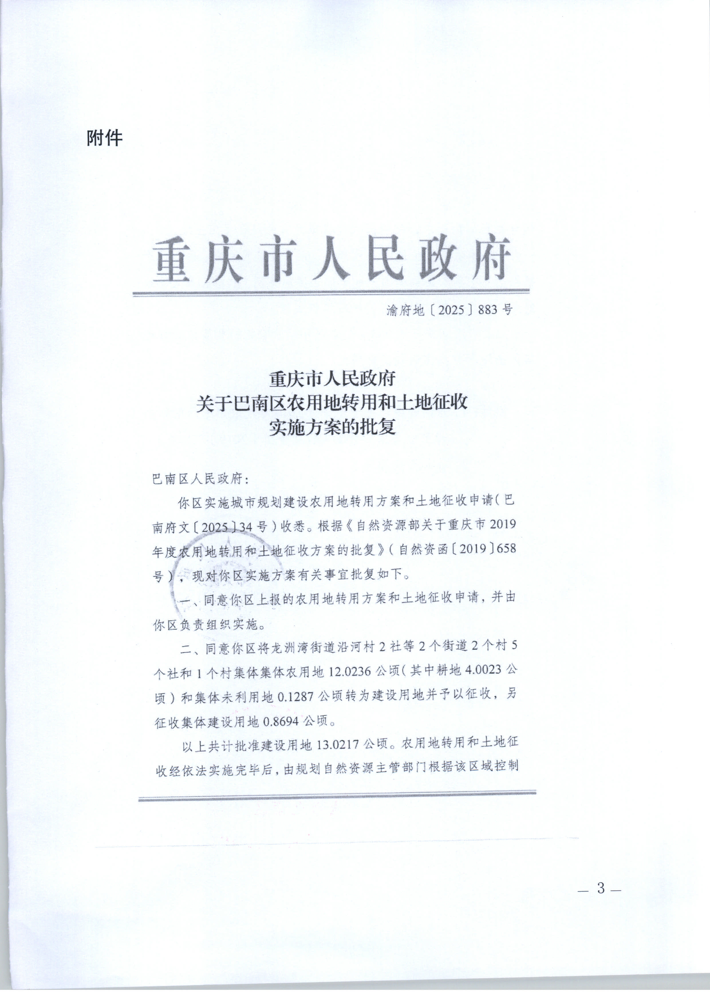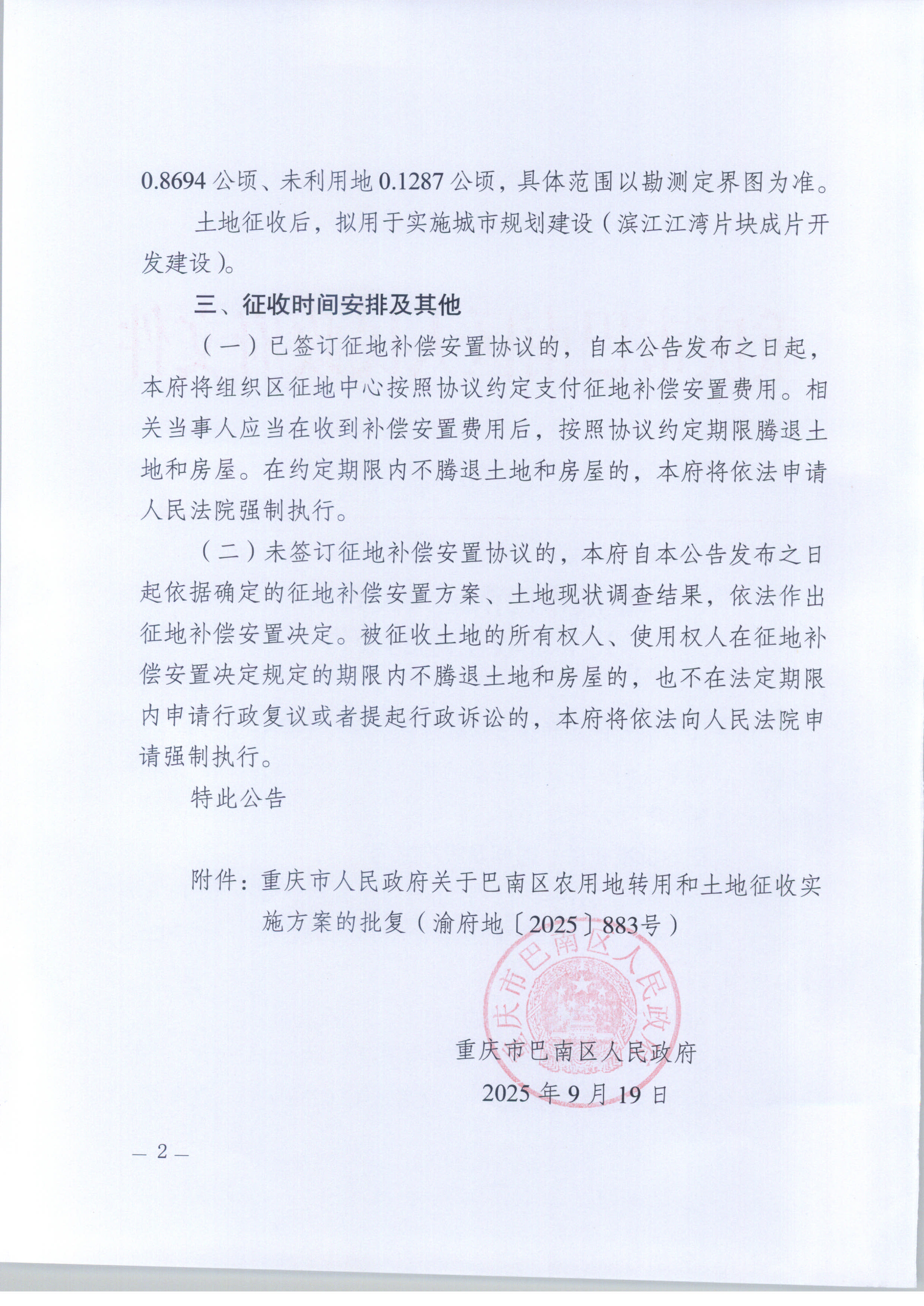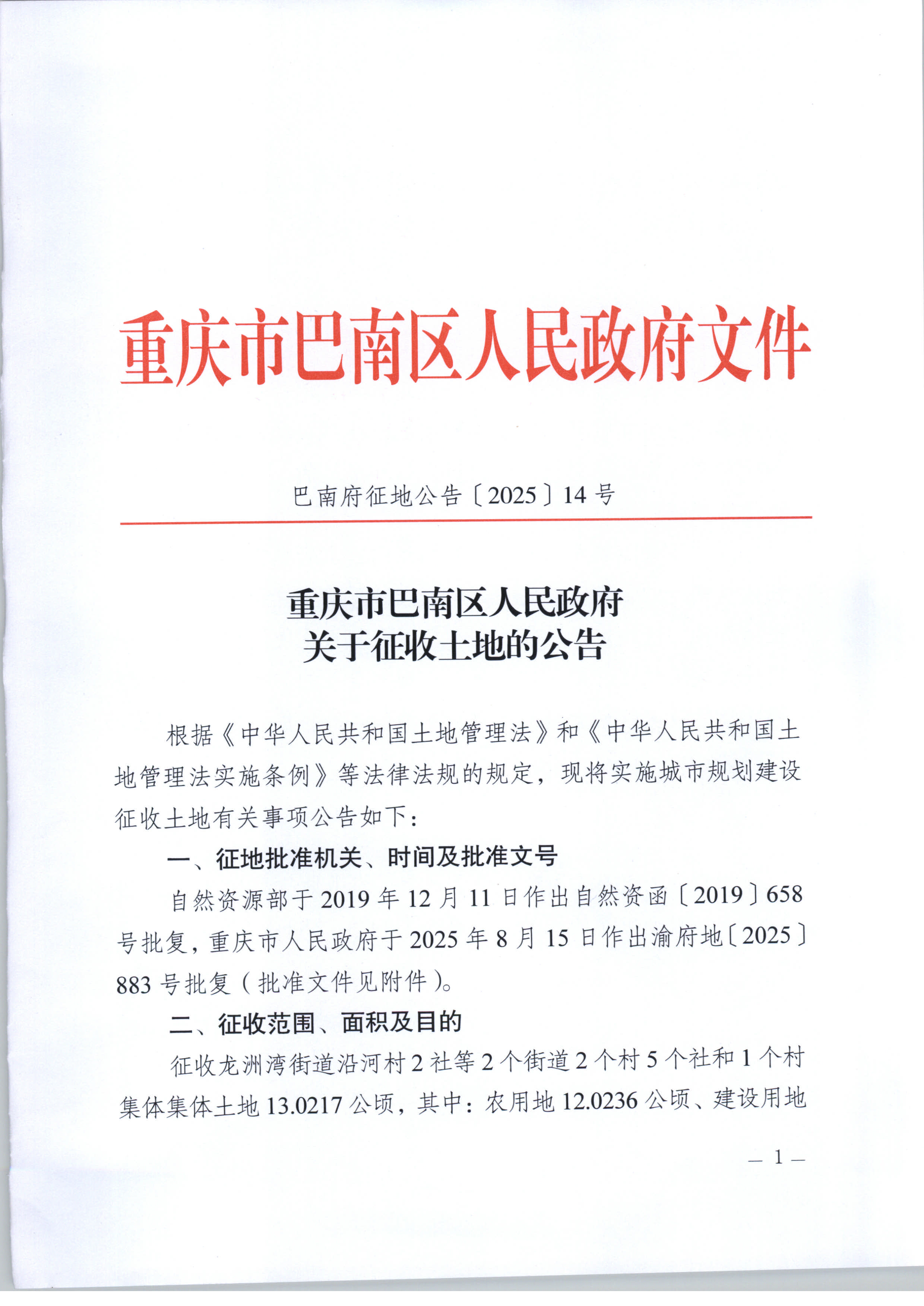 重庆市巴南区人民政府关于征收土地的公告(巴南府征地公告〔2025〕14号)