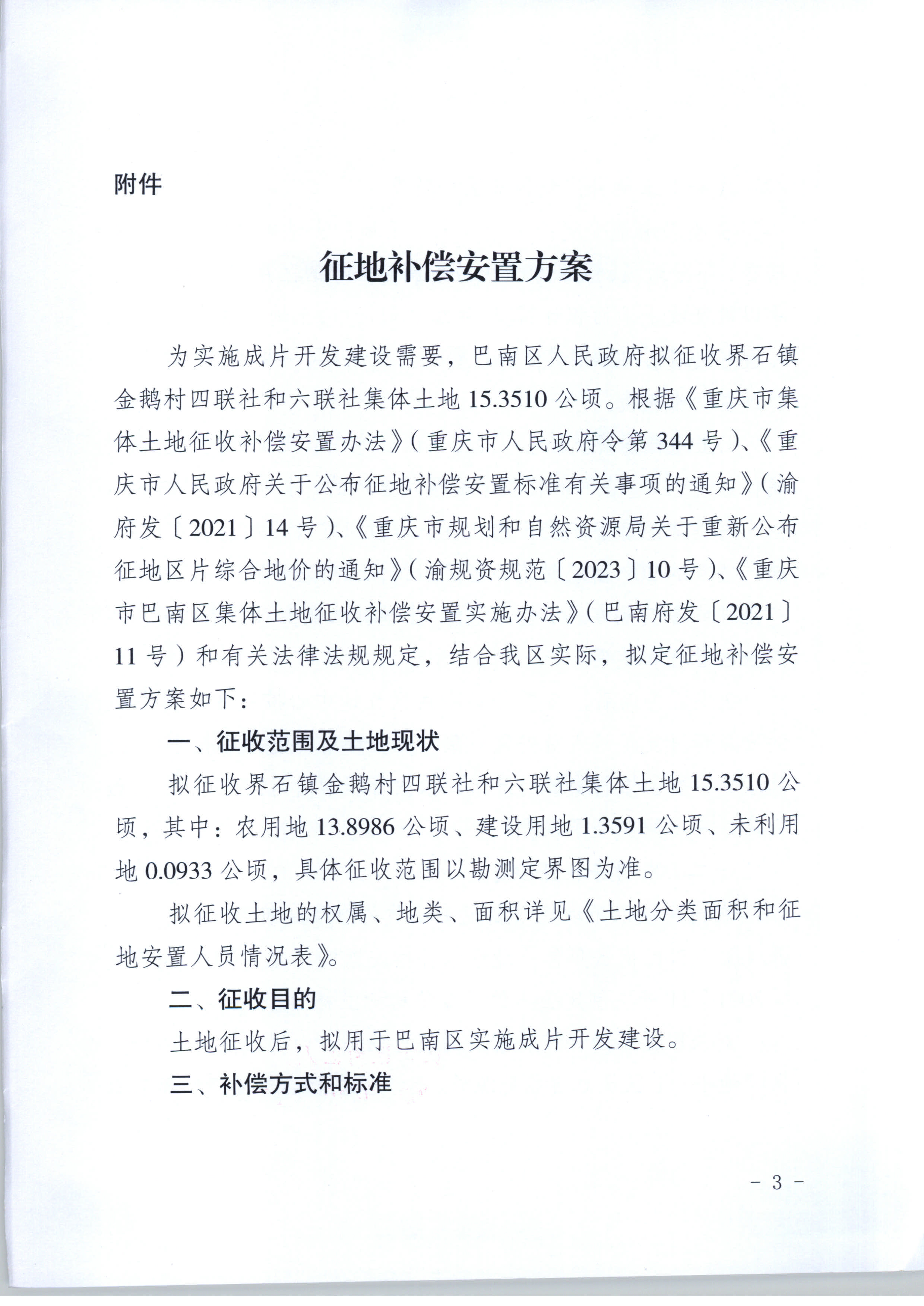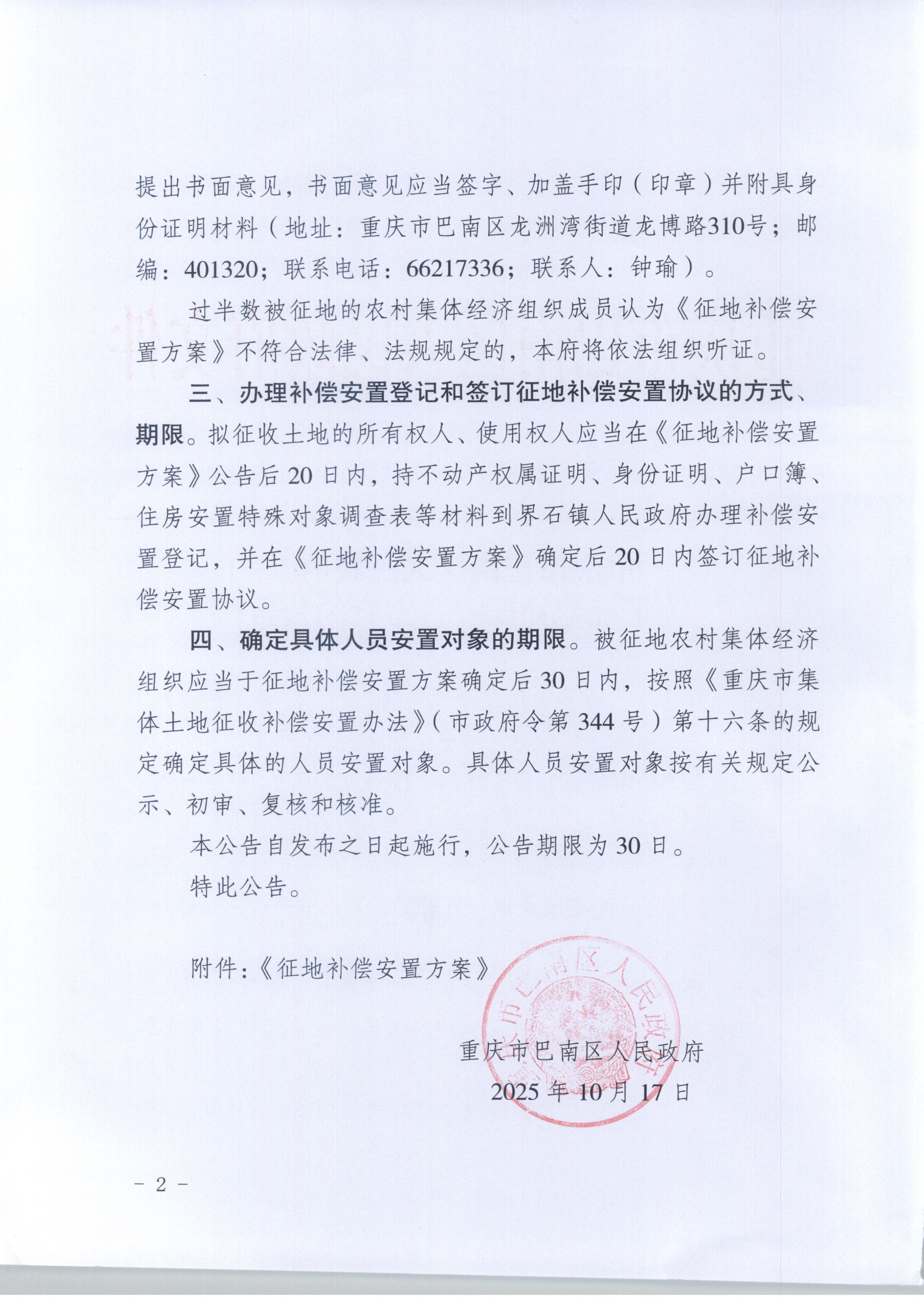 重庆市巴南区人民政府关于征地补偿安置方案的公告(巴南府方案公告〔2025〕6号)