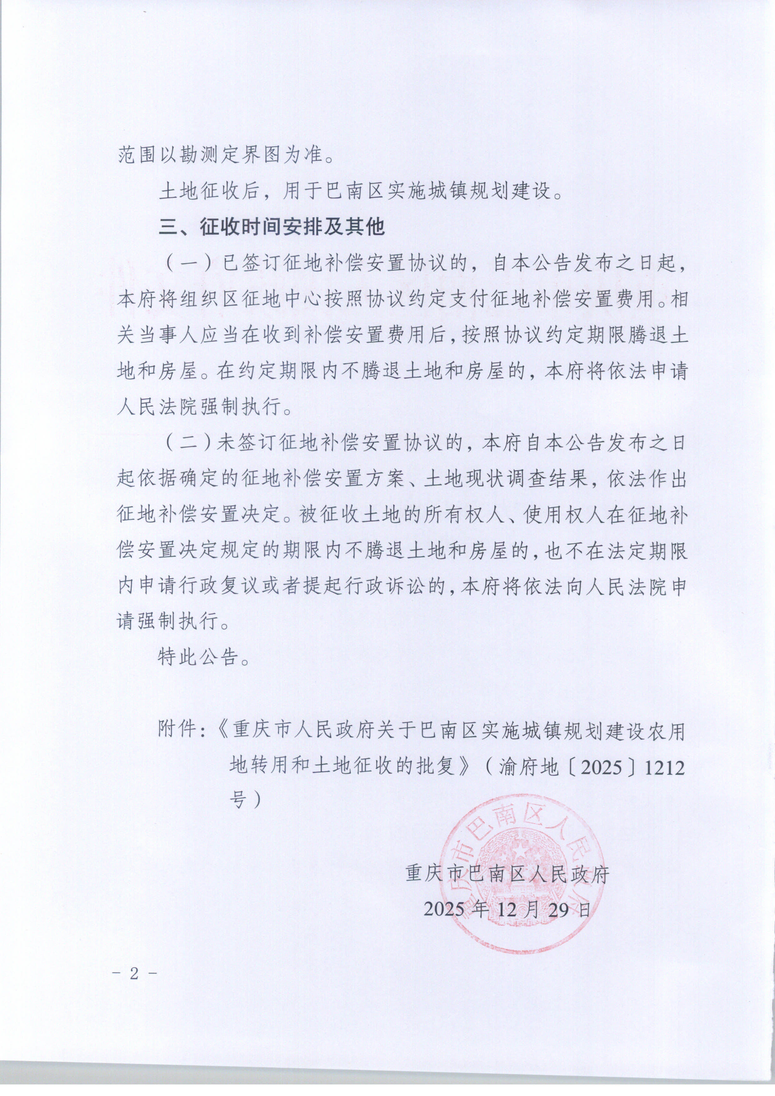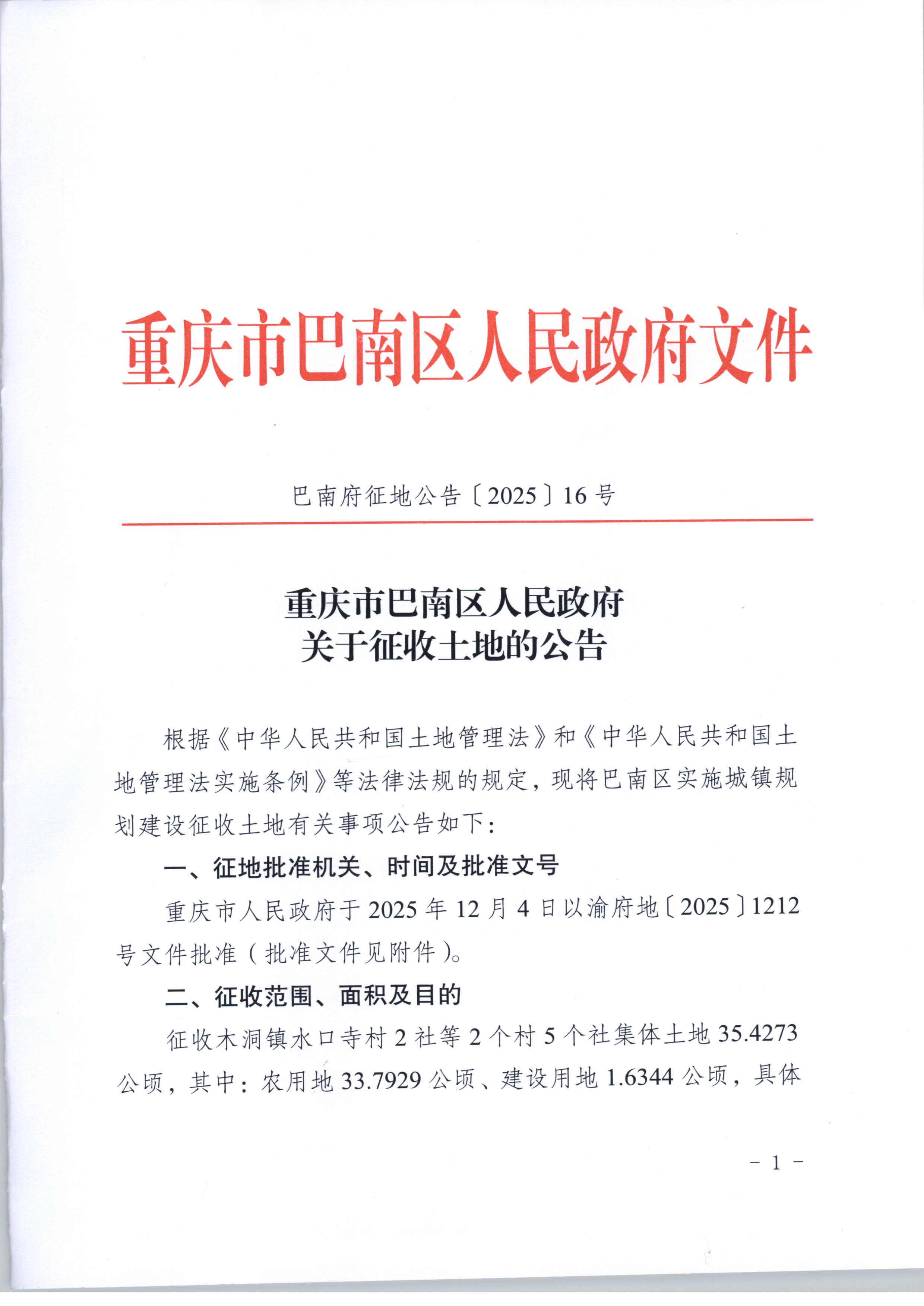 - 巴南府征地公告〔2025〕16号