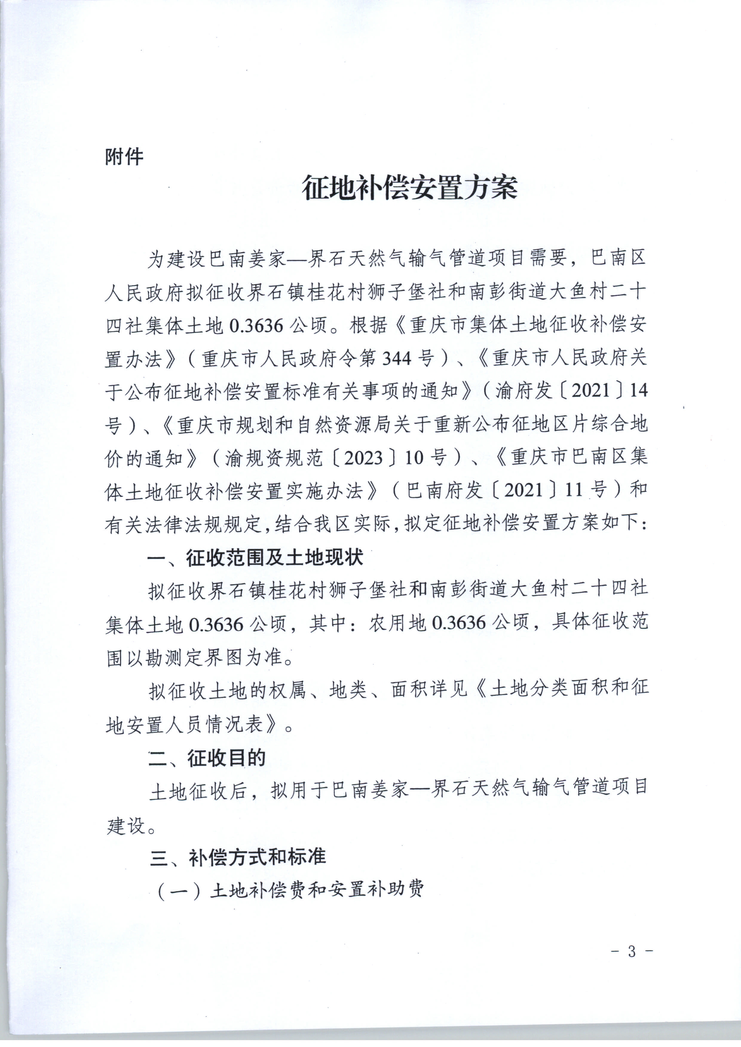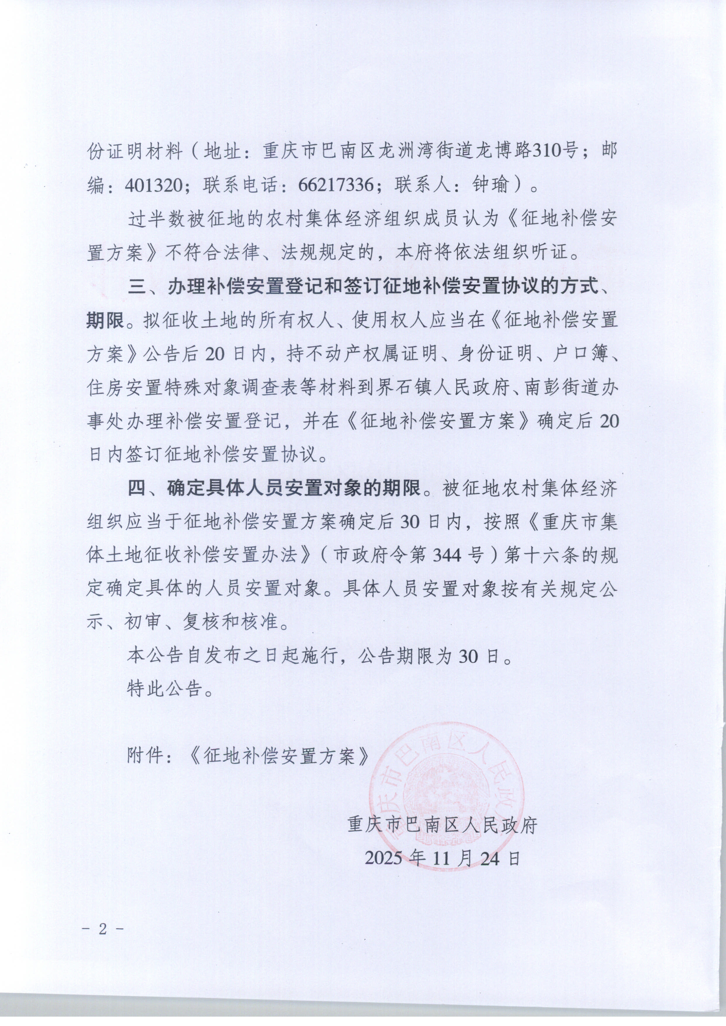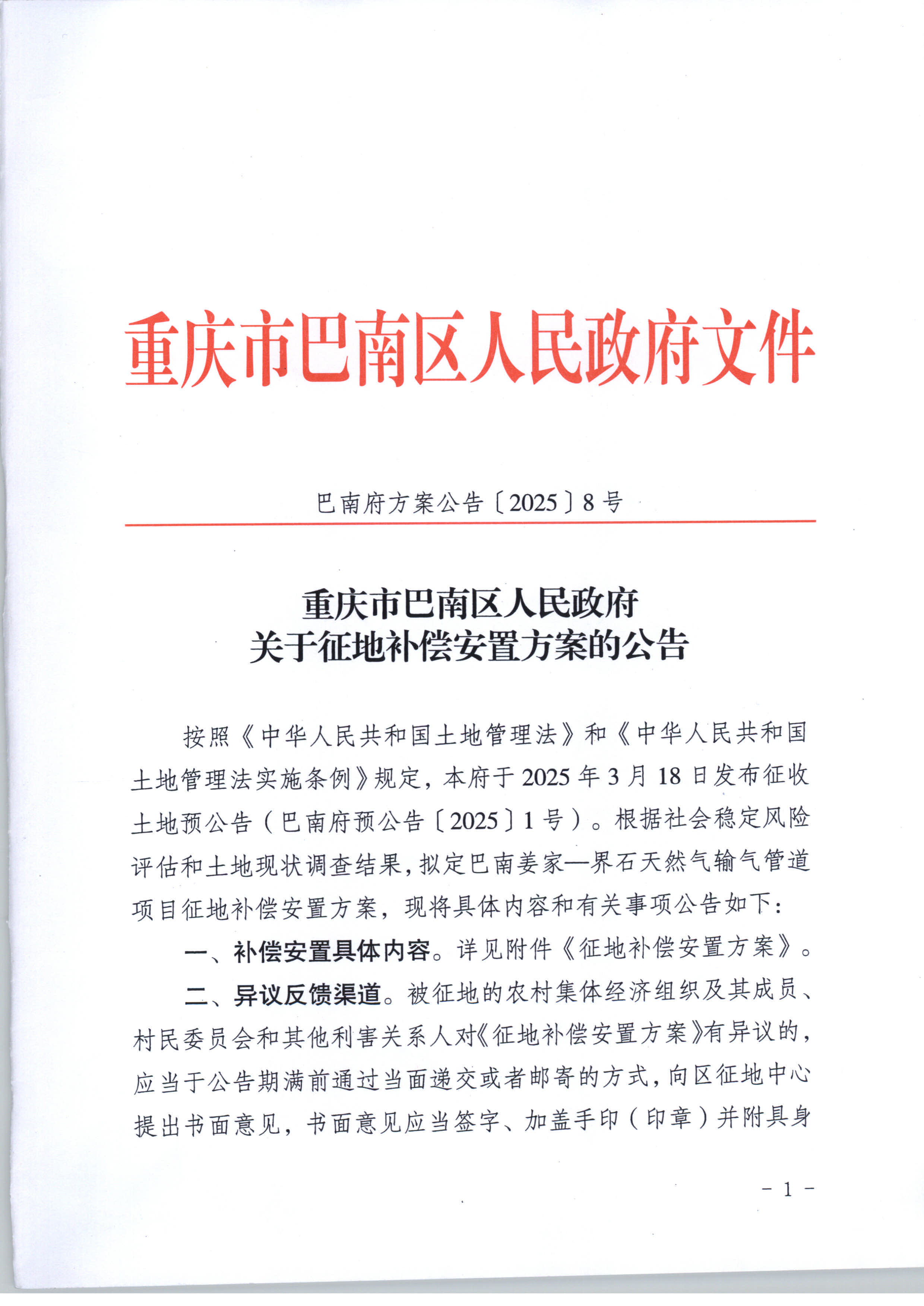 重庆市巴南区人民政府关于征地补偿安置方案的公告(巴南府方案公告〔2025〕8号)