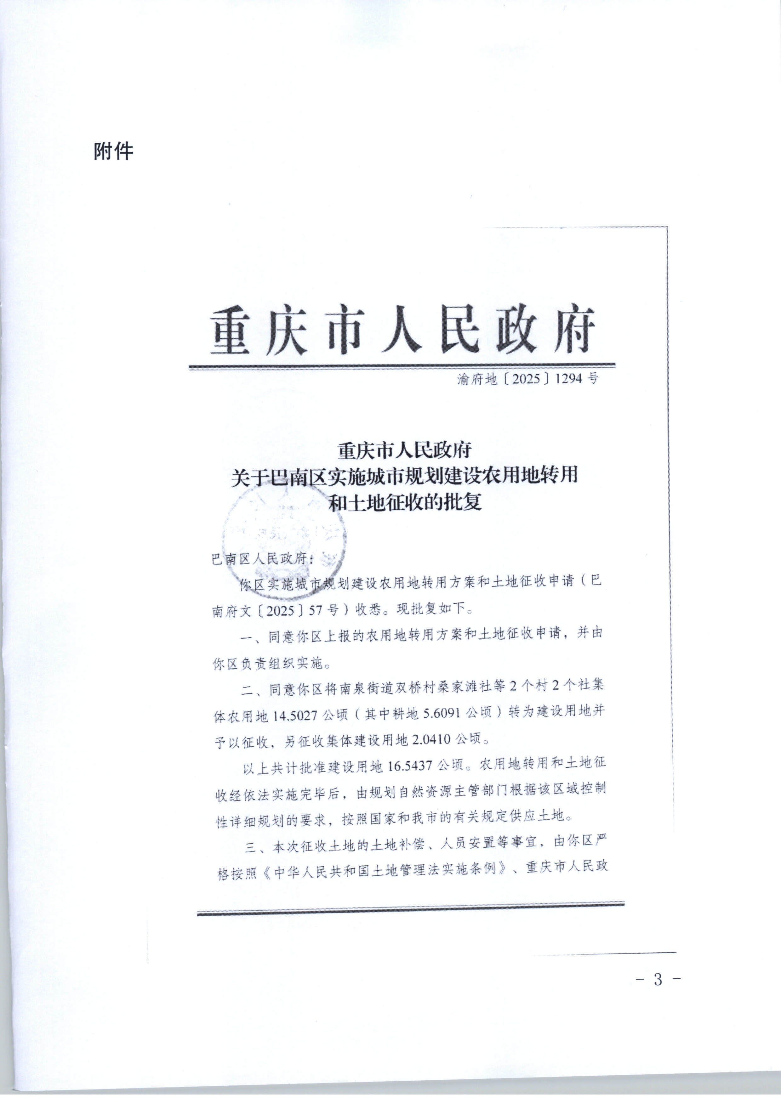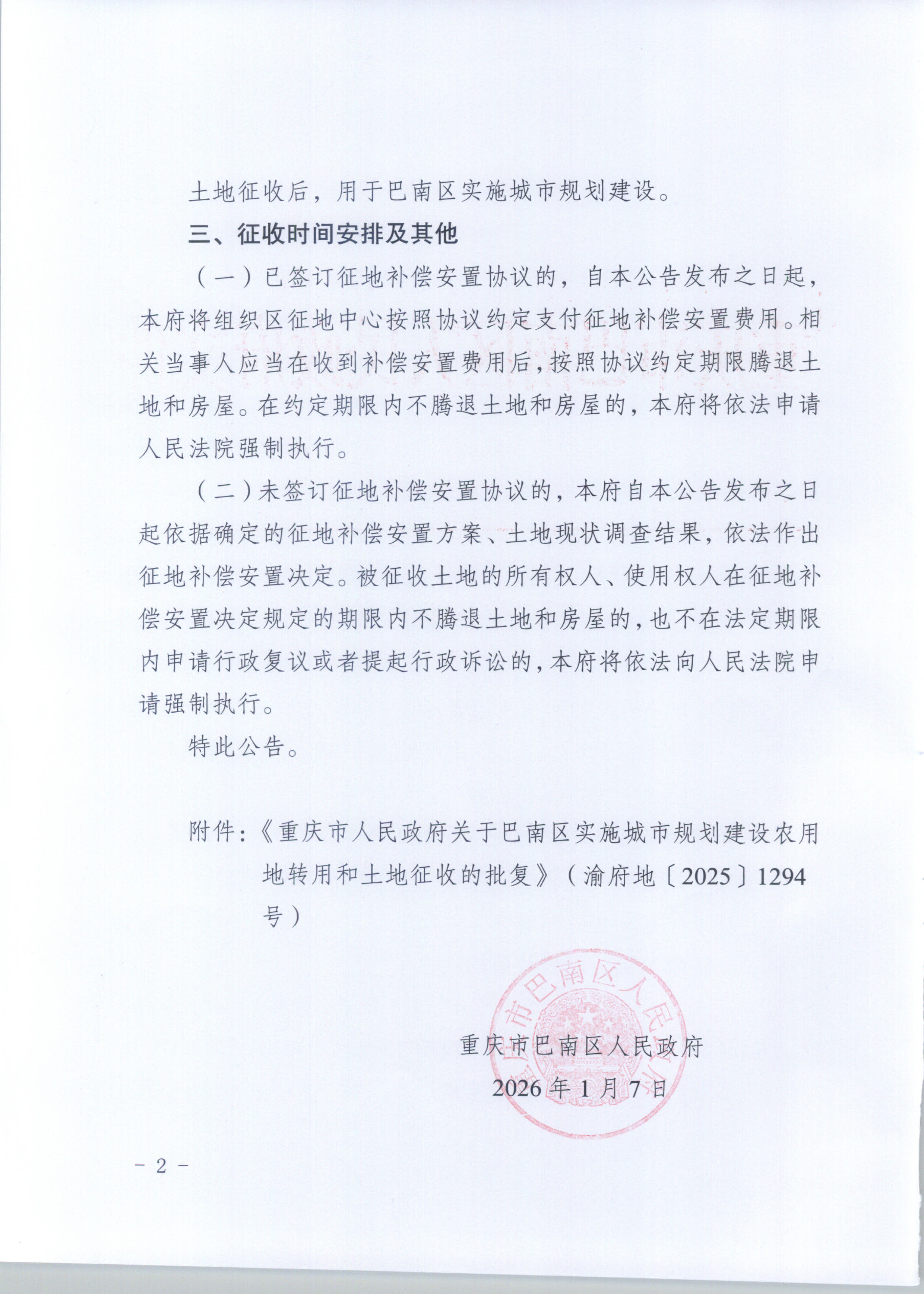重庆市巴南区人民政府关于征收土地的公告(巴南府征地公告〔2026〕1号)