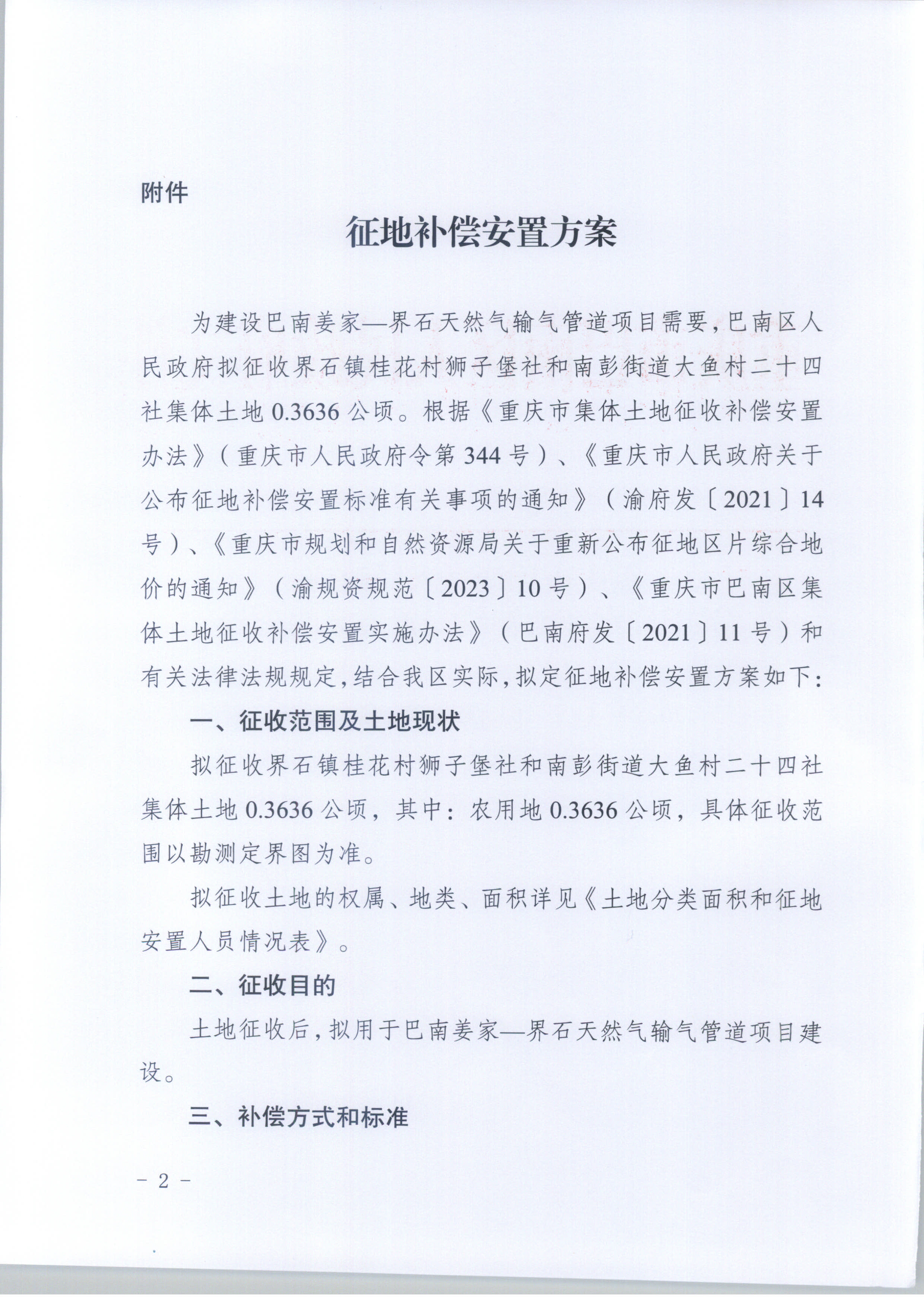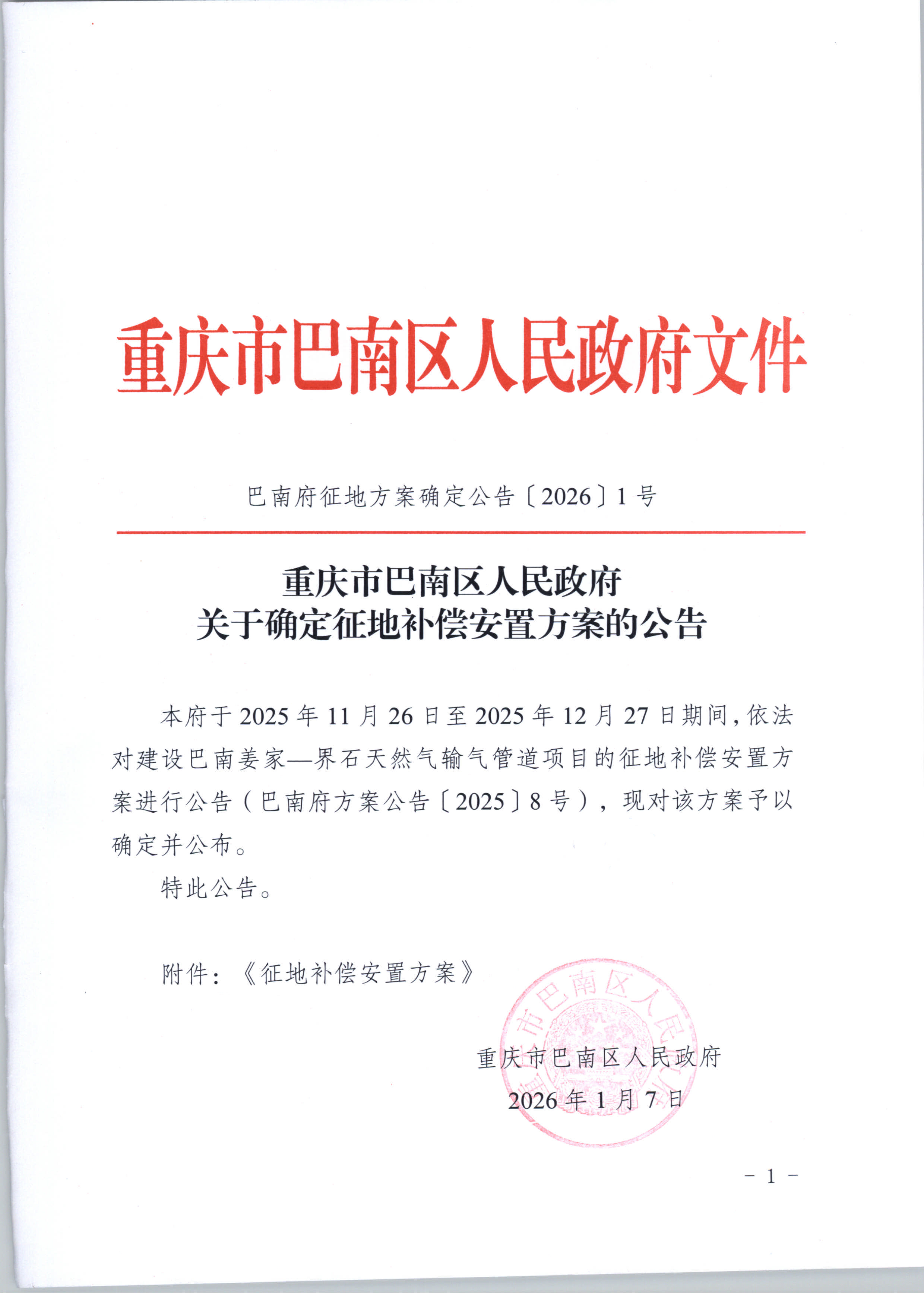 - 巴南府征地方案确定公告〔2026〕1号