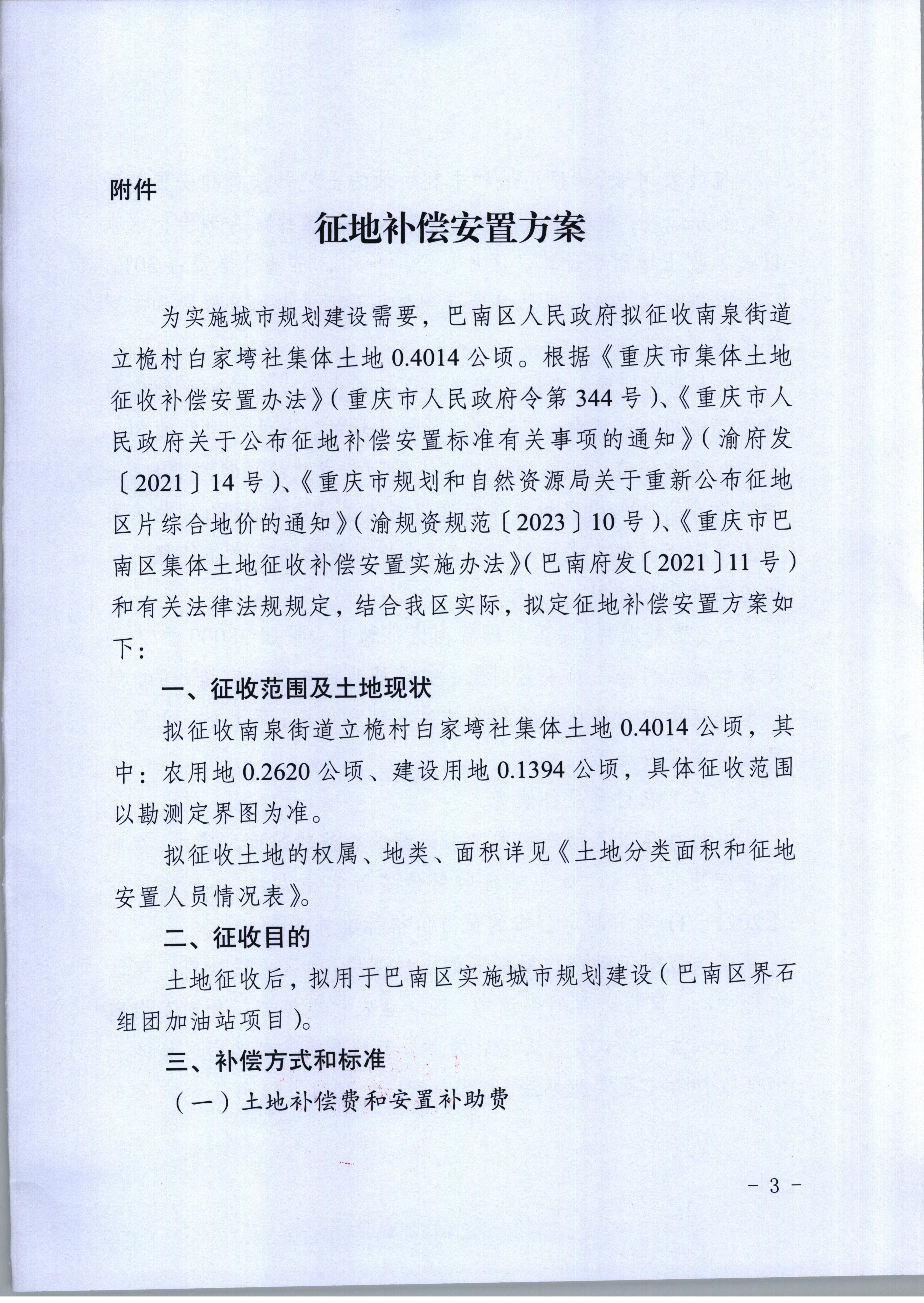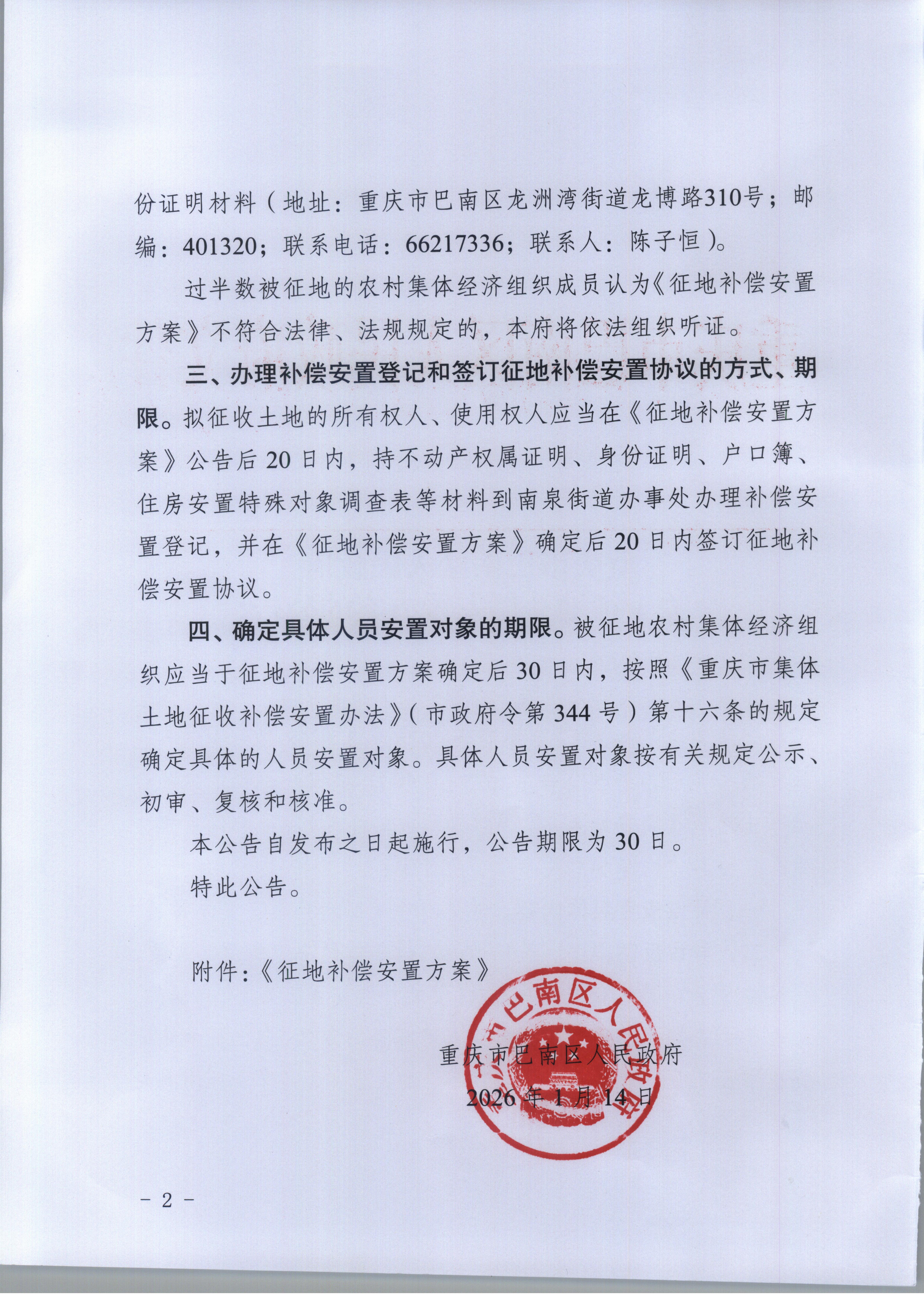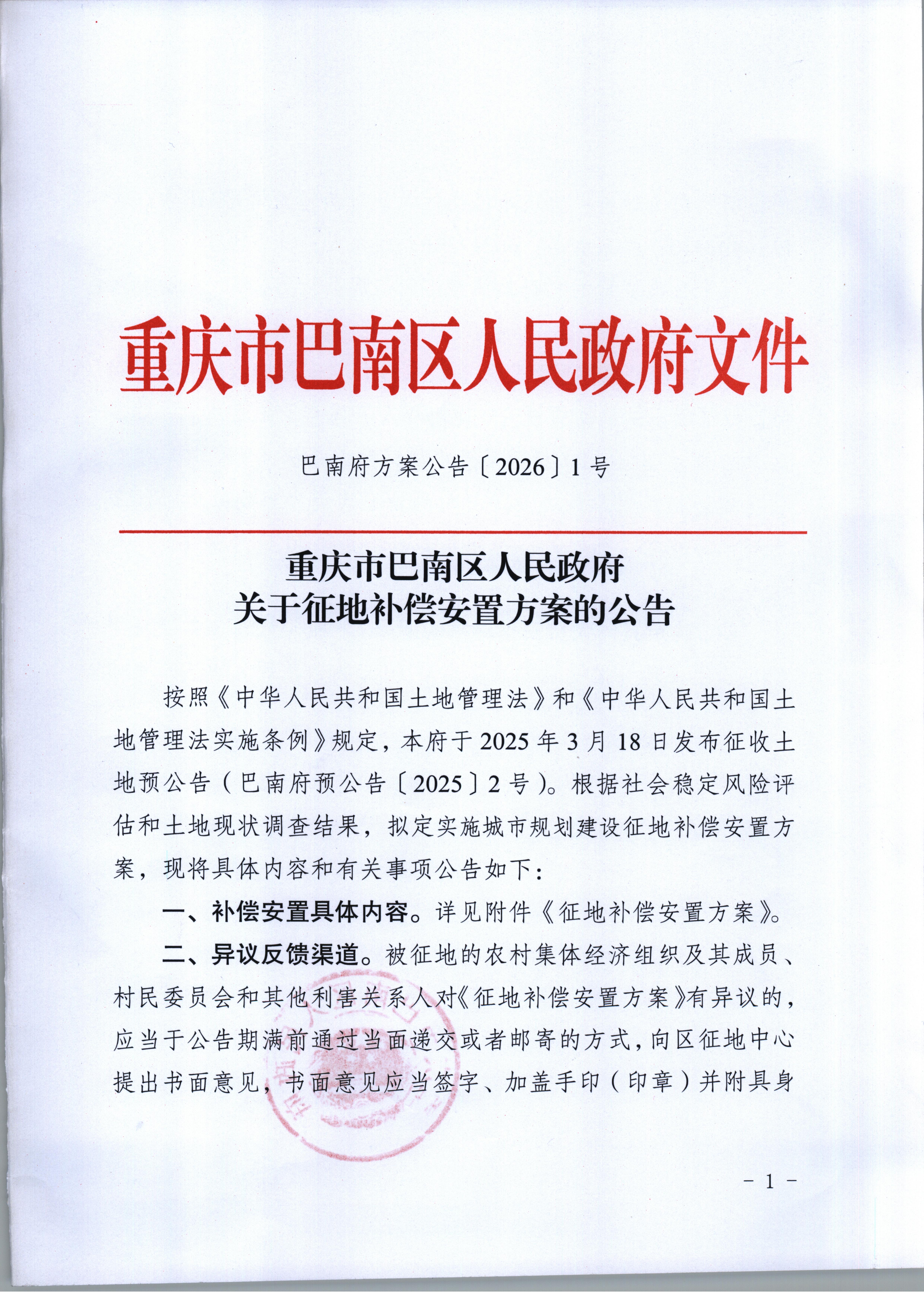重庆市巴南区人民政府关于征地补偿安置方案的公告(巴南府方案公告〔2026〕1号)