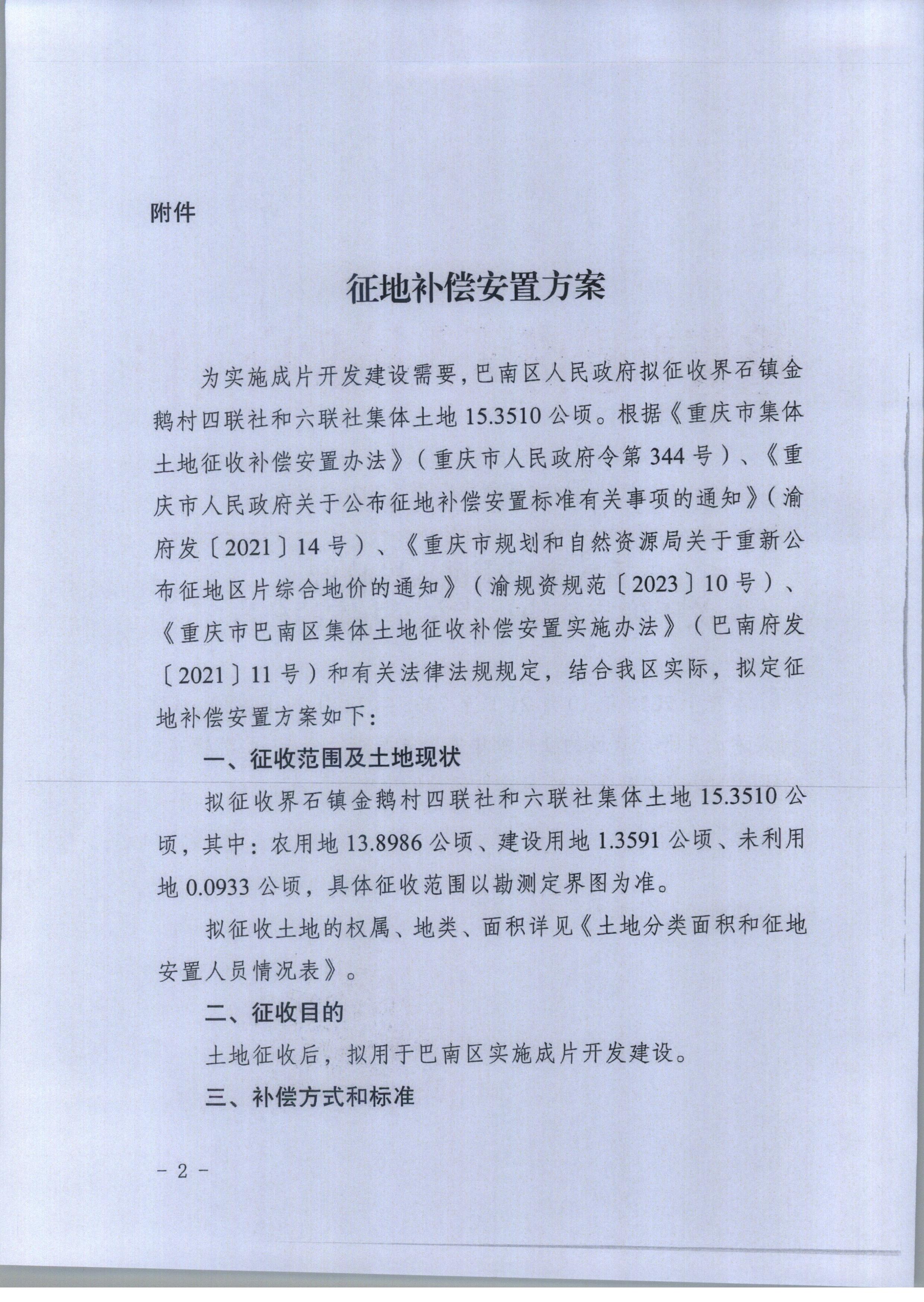 - 巴南府征地方案确定公告〔2026〕2号