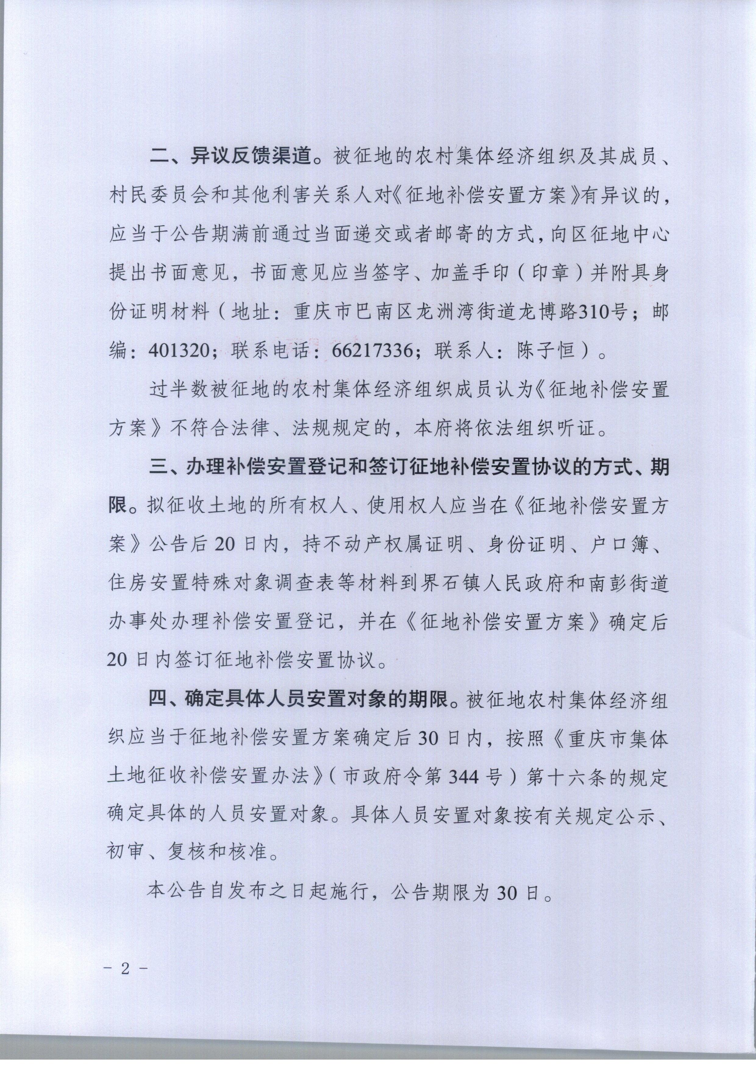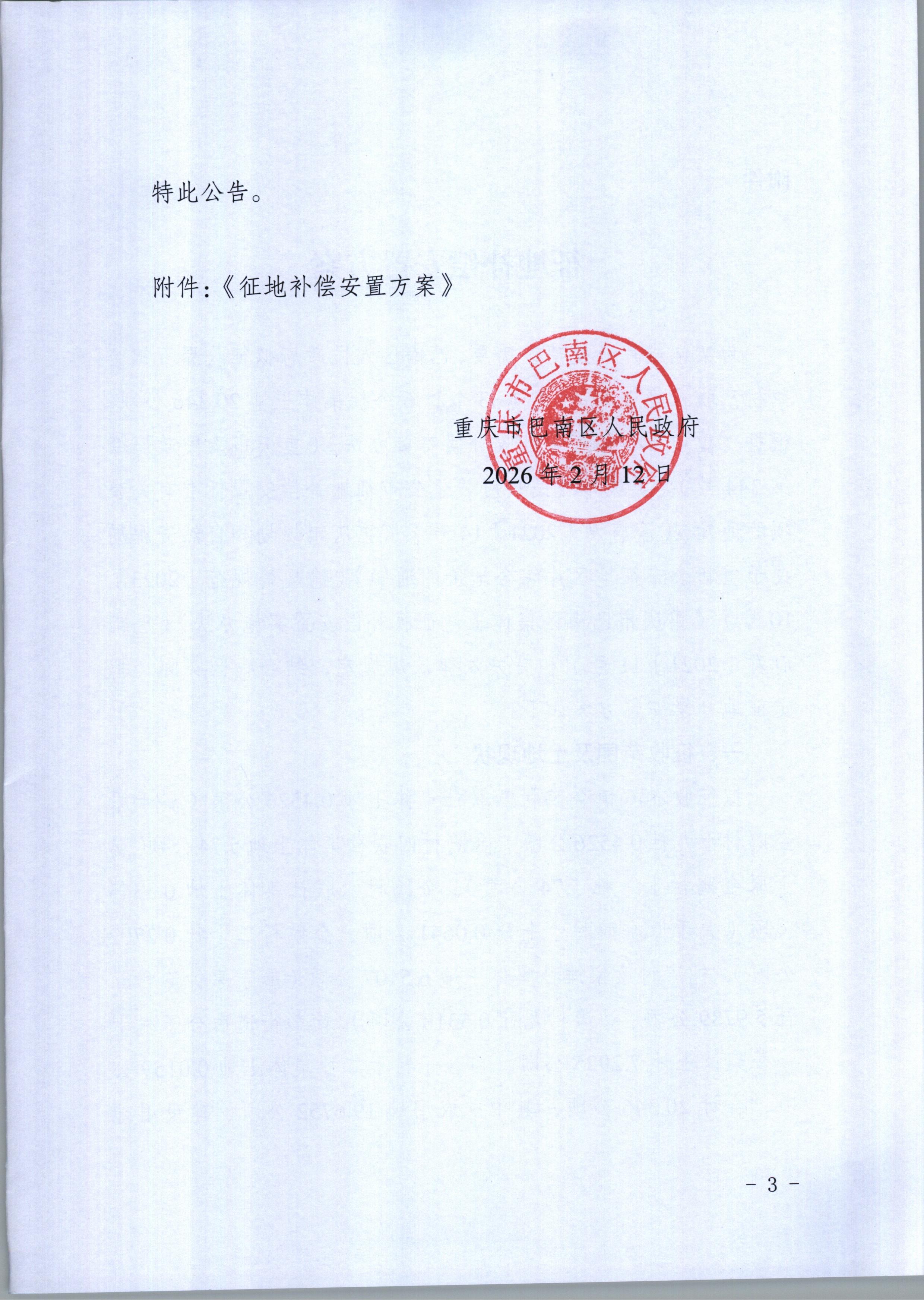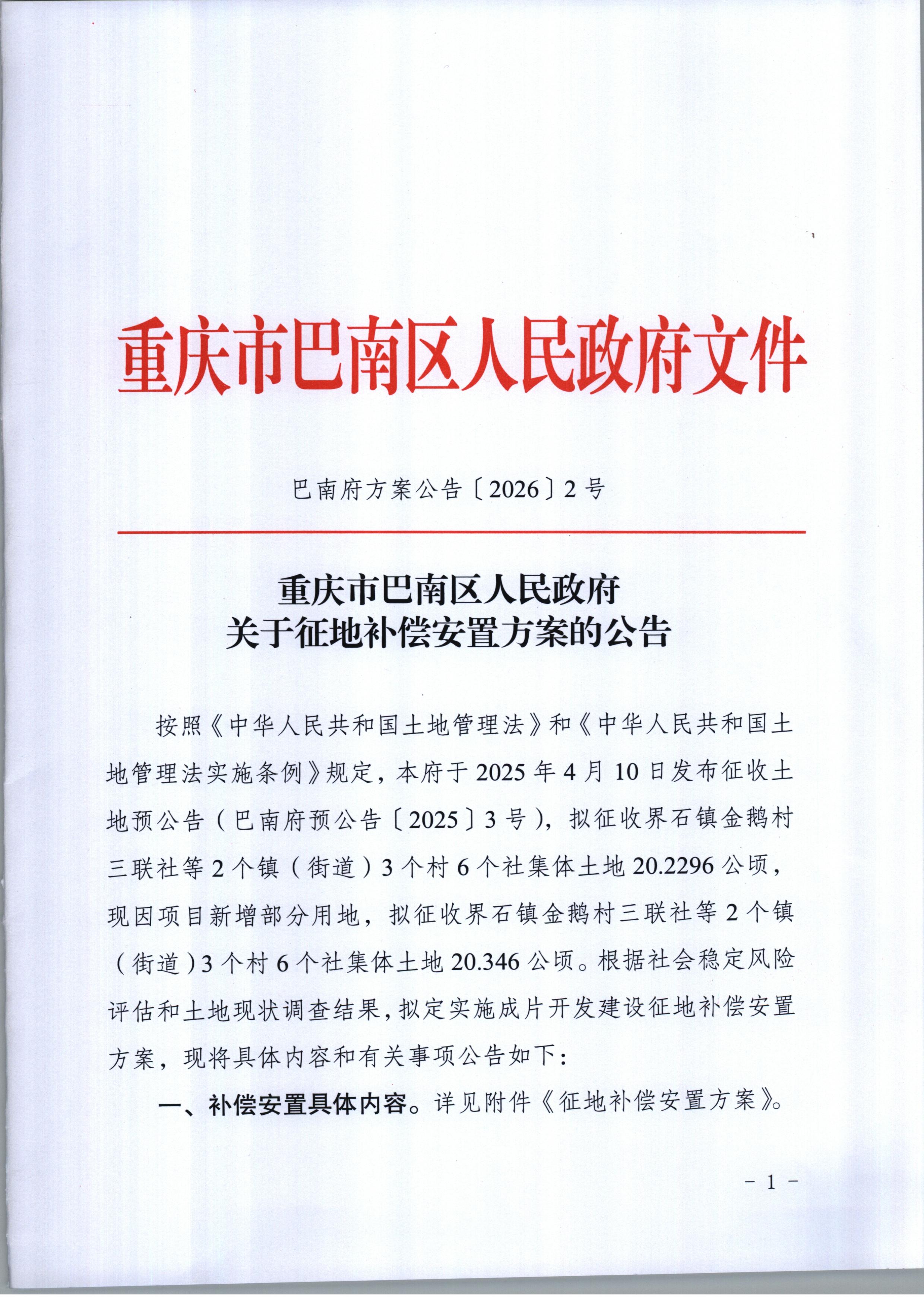 重庆市巴南区人民政府关于征地补偿安置方案的公告(巴南府方案公告〔2026〕2号)