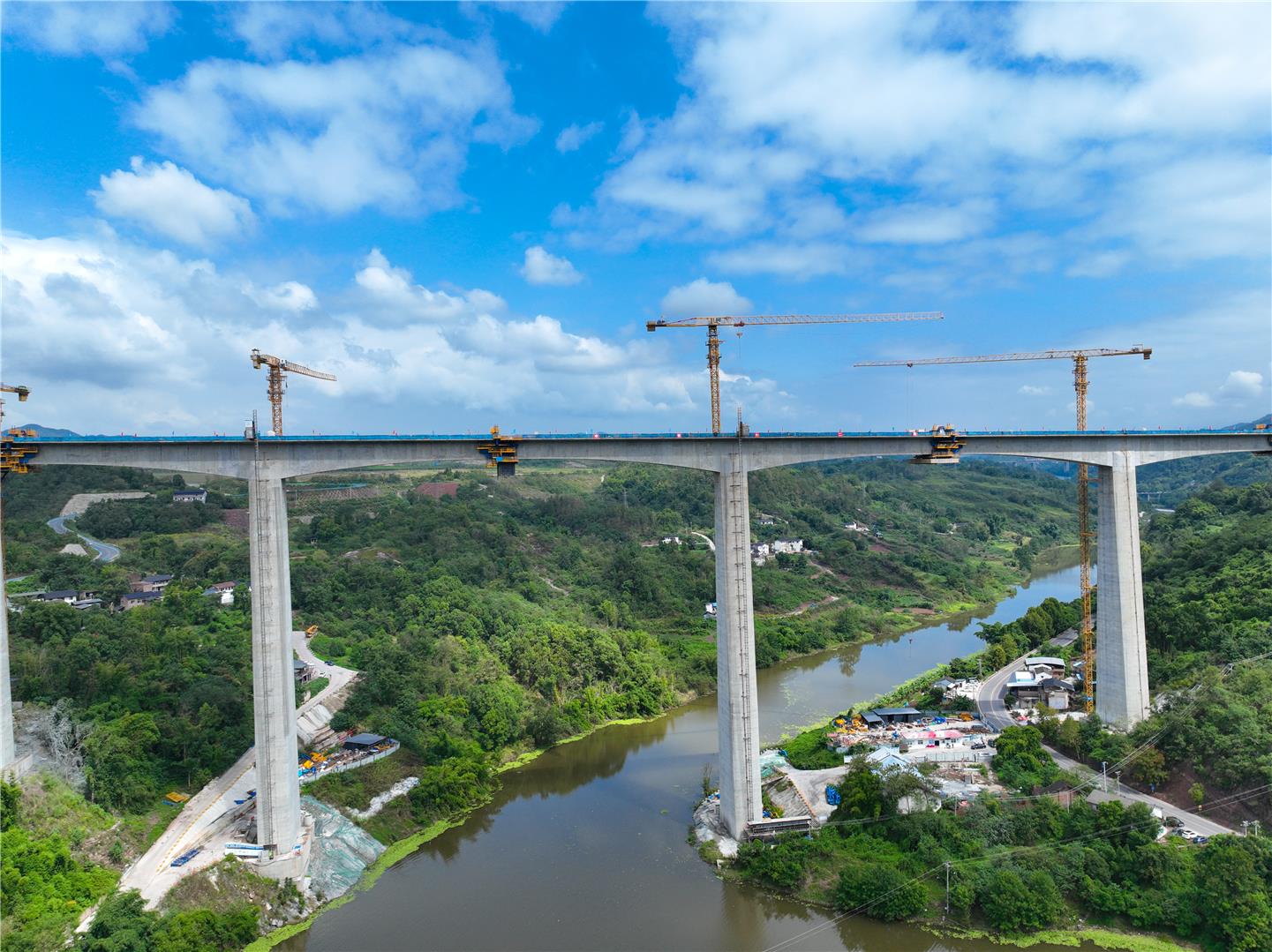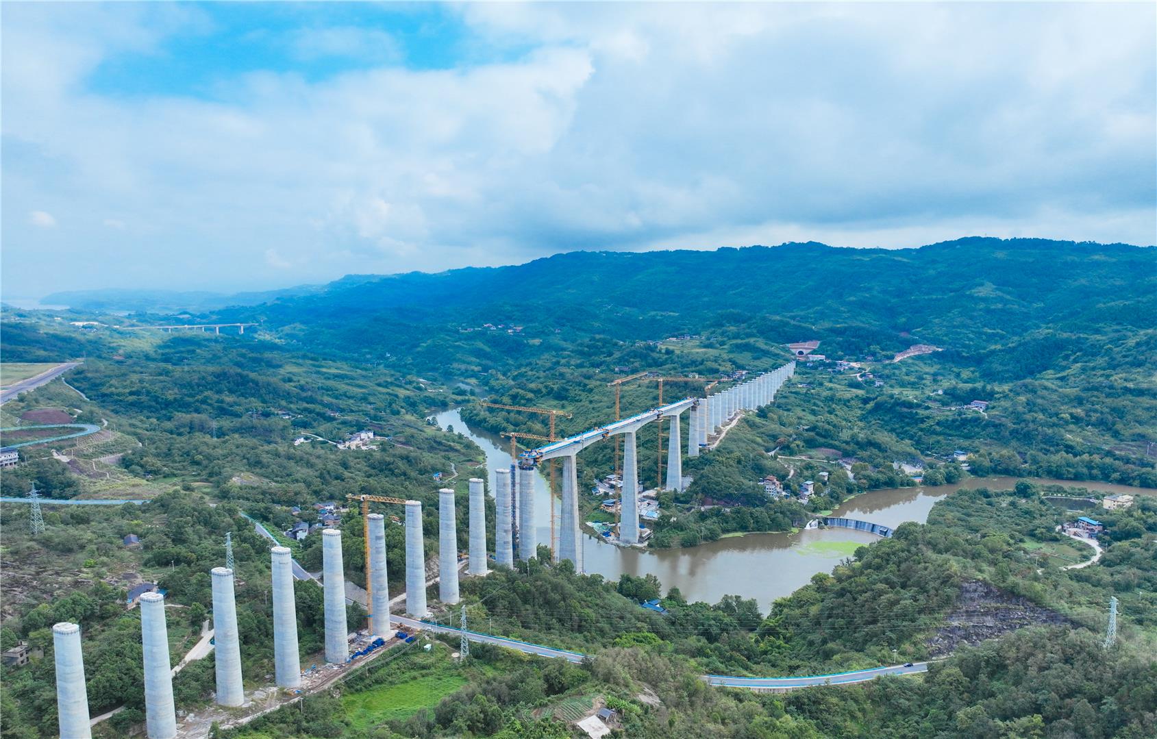 全长1796米、48个墩台!渝万高铁五布河双线特大桥合龙
