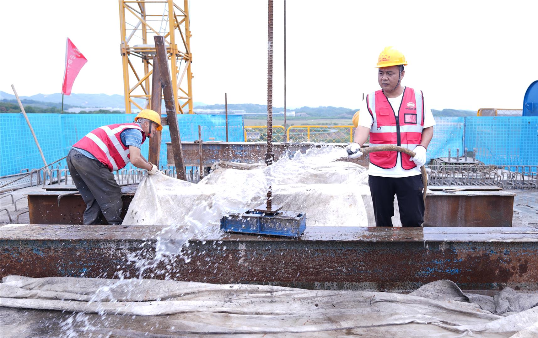 中铁十二局承担渝万高铁站前9标29.8公里施工任务。其中五布河双线特大桥全长1796米,共设计48个墩台,其中墩高超过50米的20个,跨越S207省道及长江支流五布河,为标段内重难点工程。