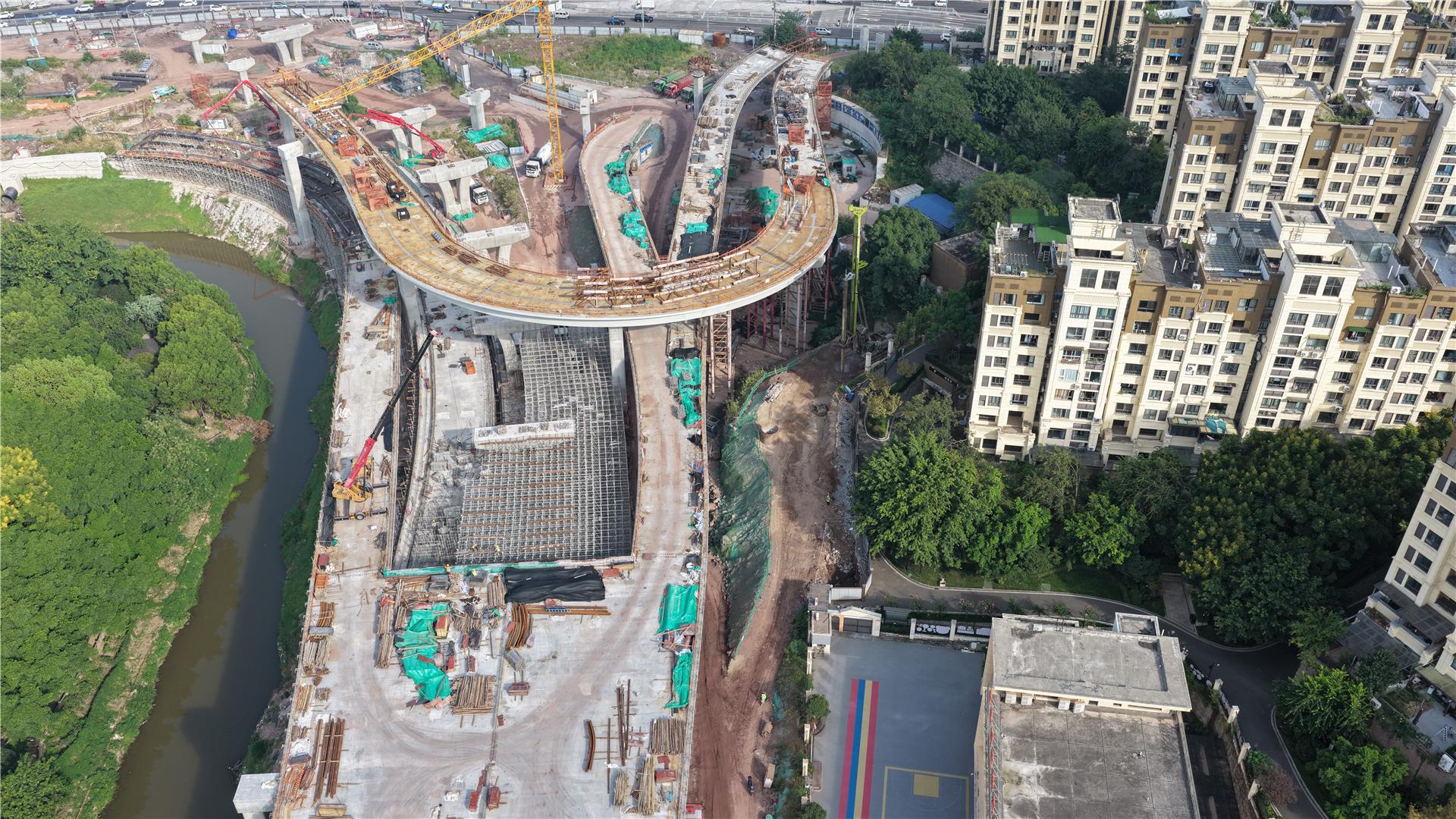 记者在施工现场看到,工人们正在进行桥梁上部结构的现浇箱梁施工、钢箱梁安装等工作。