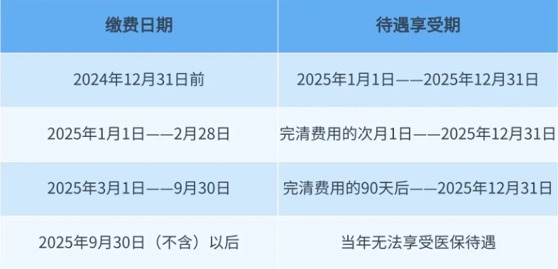 为不影响您正常享受医保待遇,最迟不得晚于2025年9月30日完清当年医保费用(低保、特困、新生儿等特殊群体除外)。