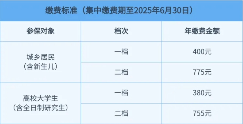 (一)2025年1月1日——6月30日,缴费金额与集中参保缴费期无变化,具体标准如下: