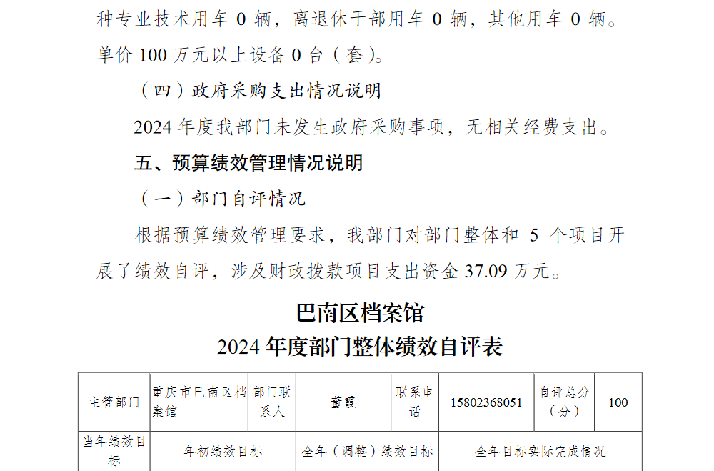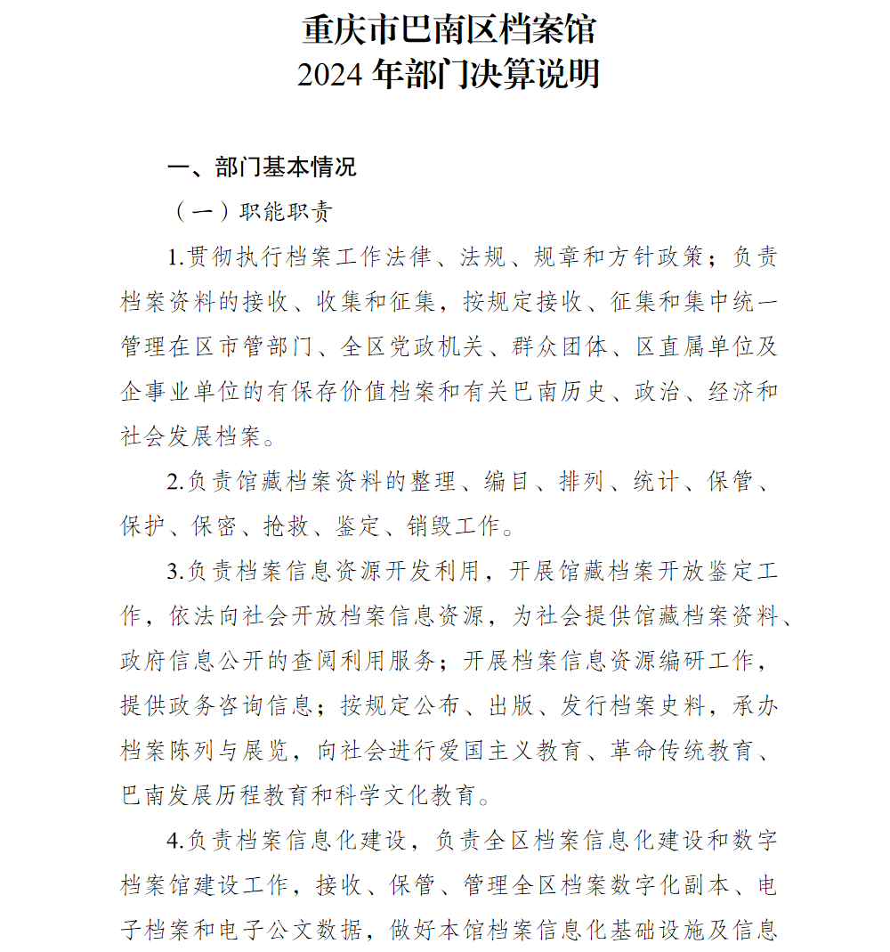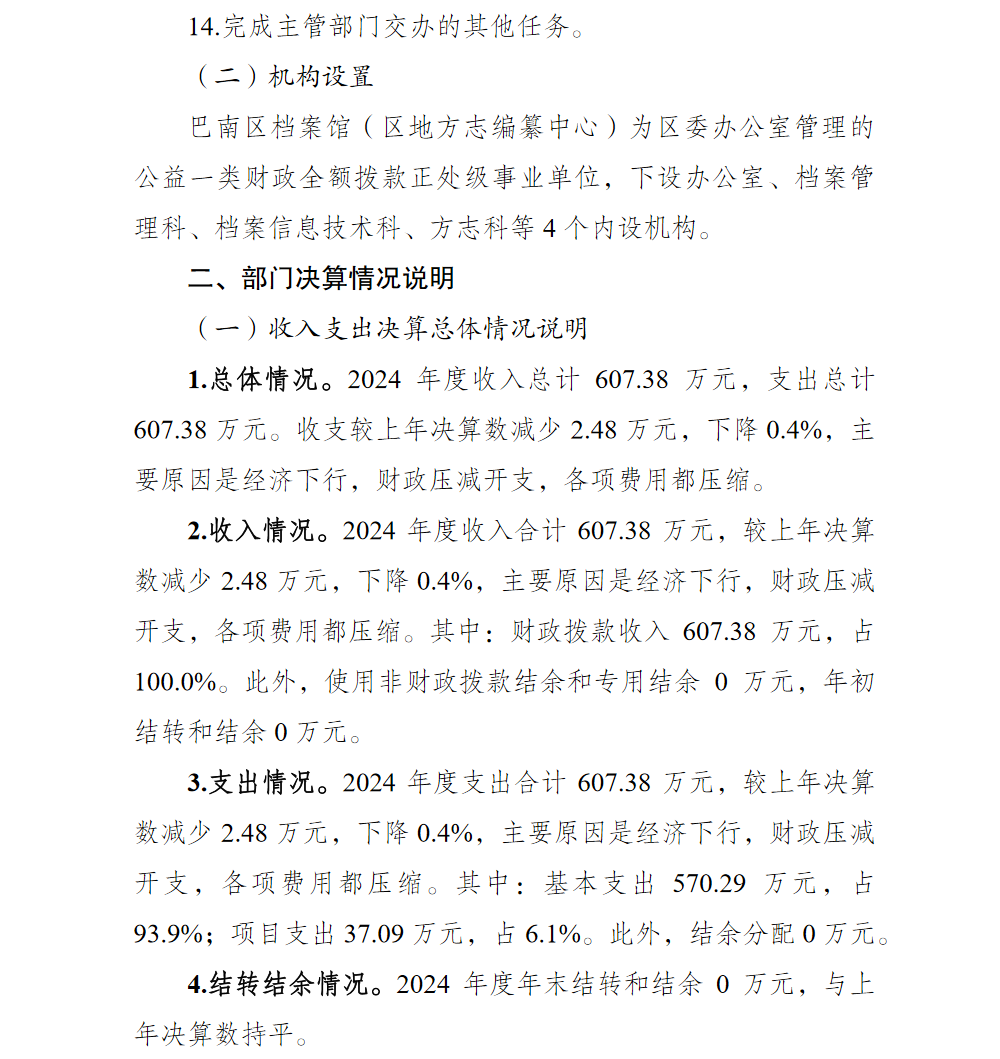 重庆市巴南区档案馆2024年部门决算说明及附表