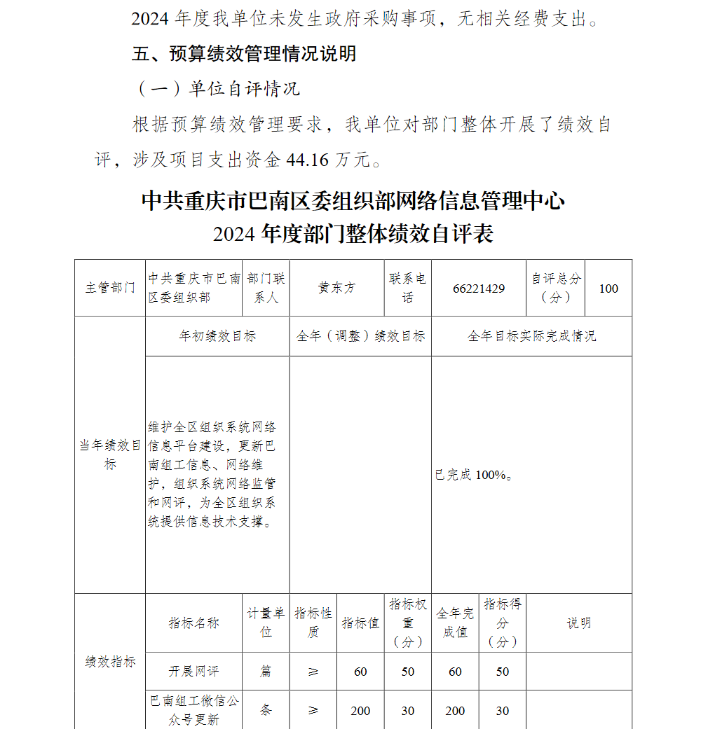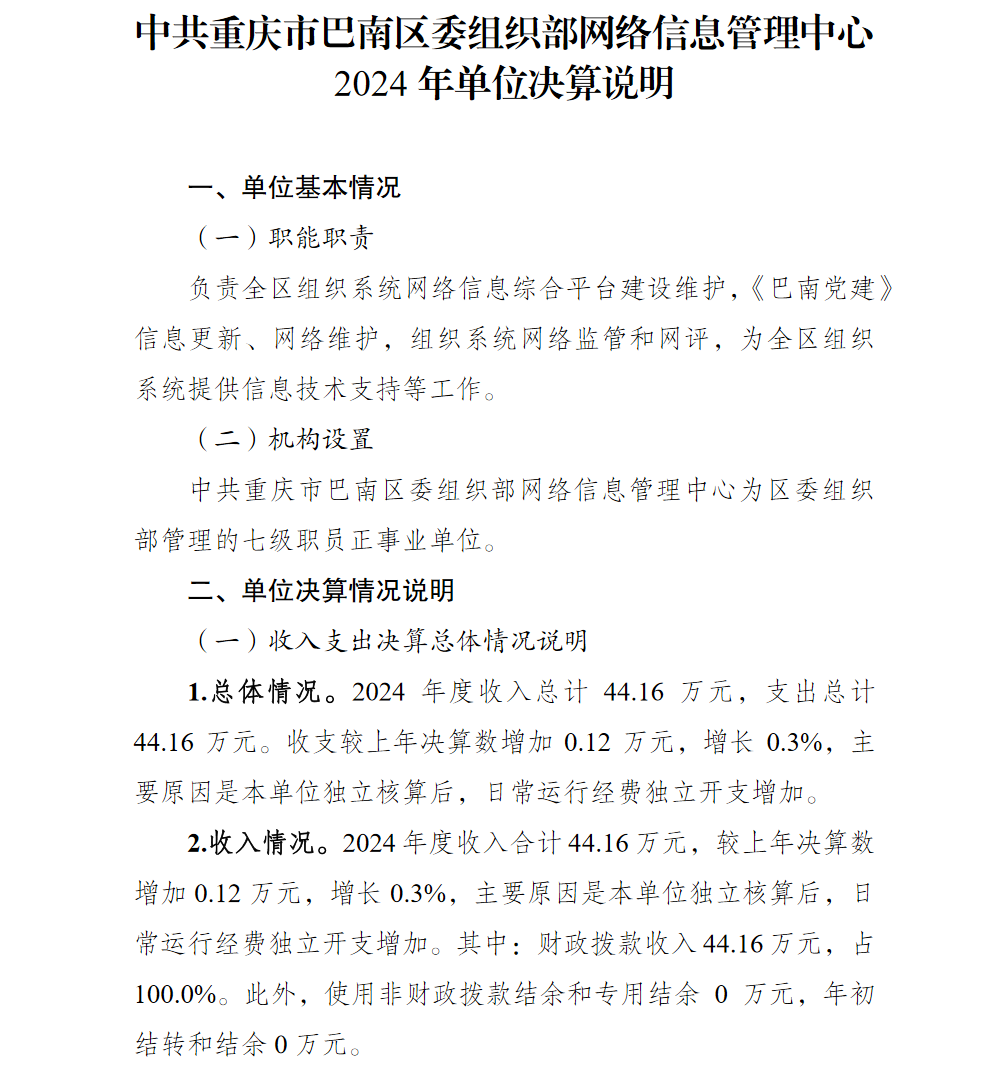中共重庆市巴南区委组织部网络信息管理中心2024年单位决算说明及附表