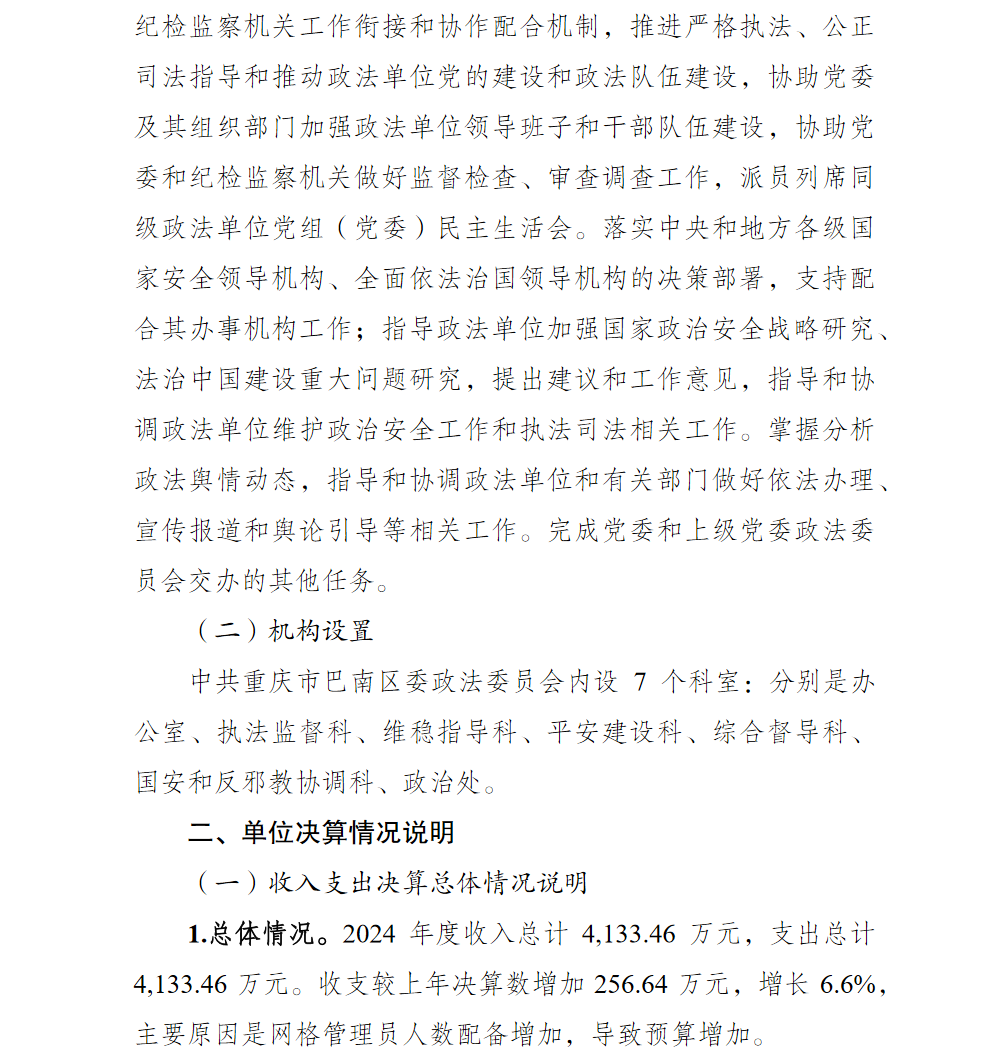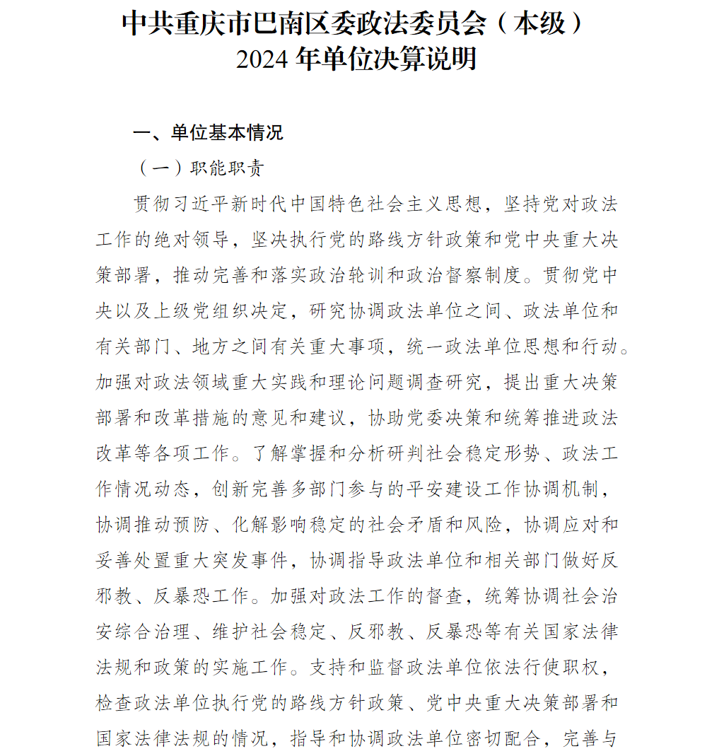 中共重庆市巴南区委政法委员会(本级)2024年单位决算说明及附表
