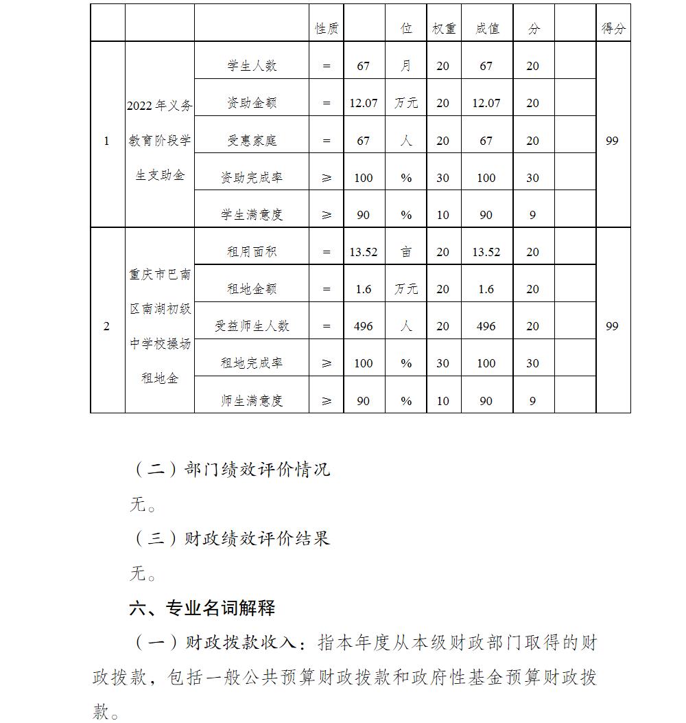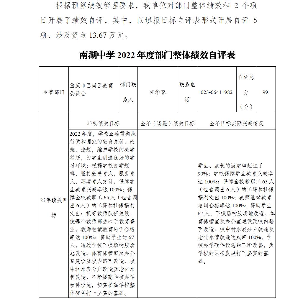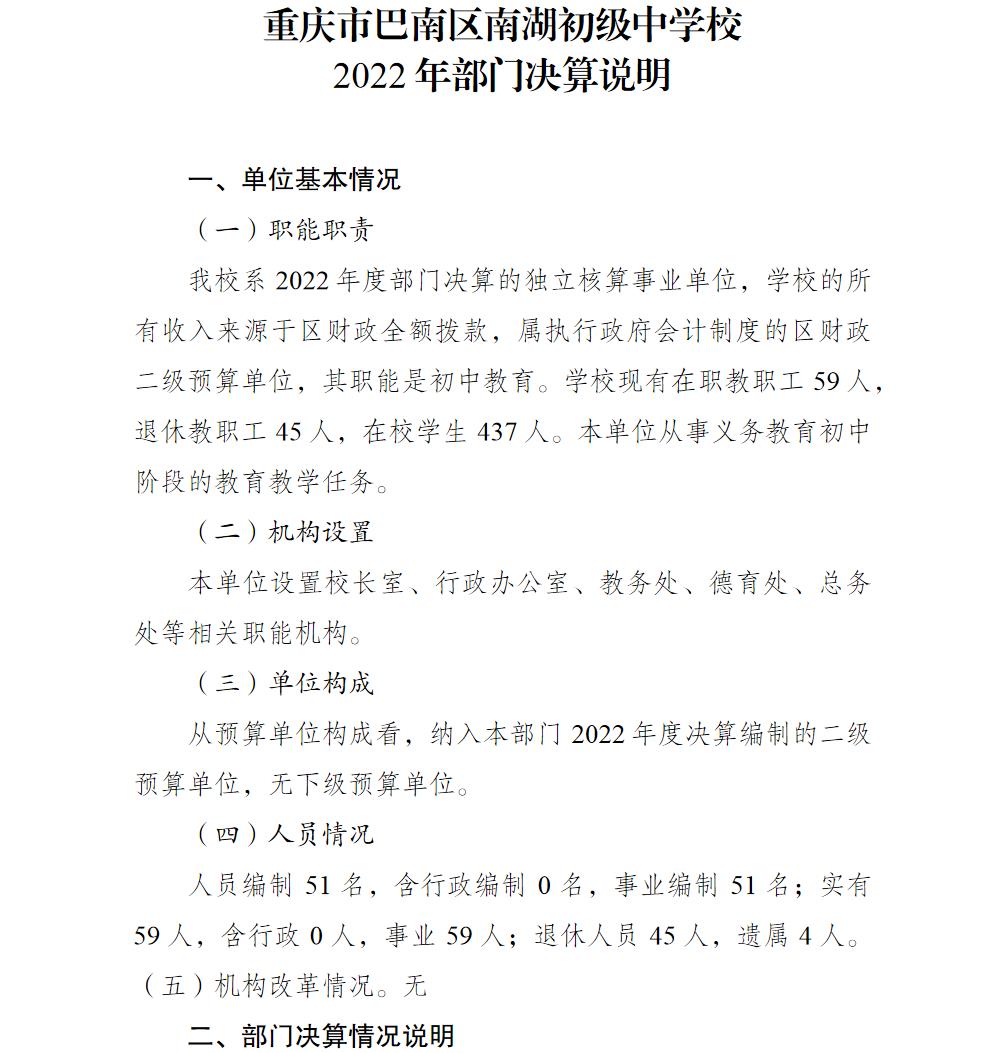 重庆市巴南区南湖初级中学校2022年部门决算说明