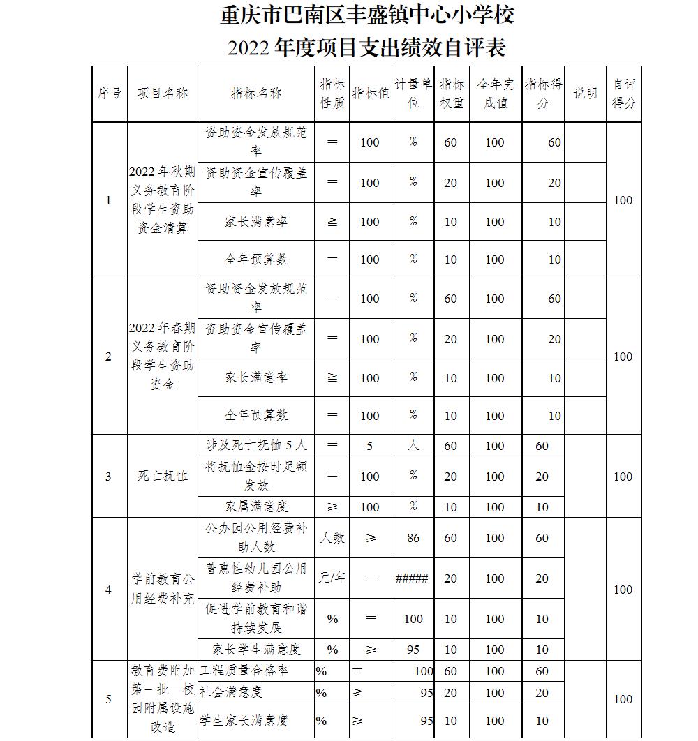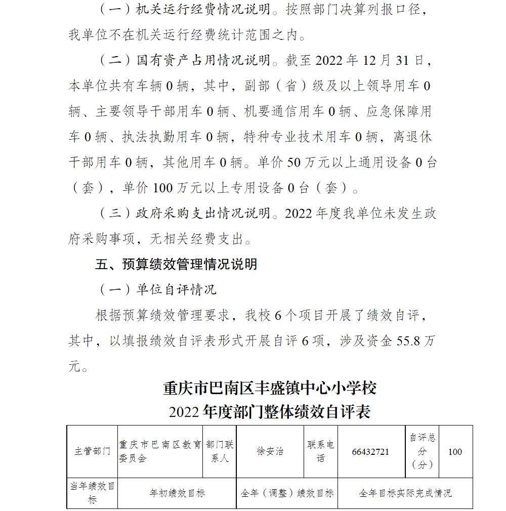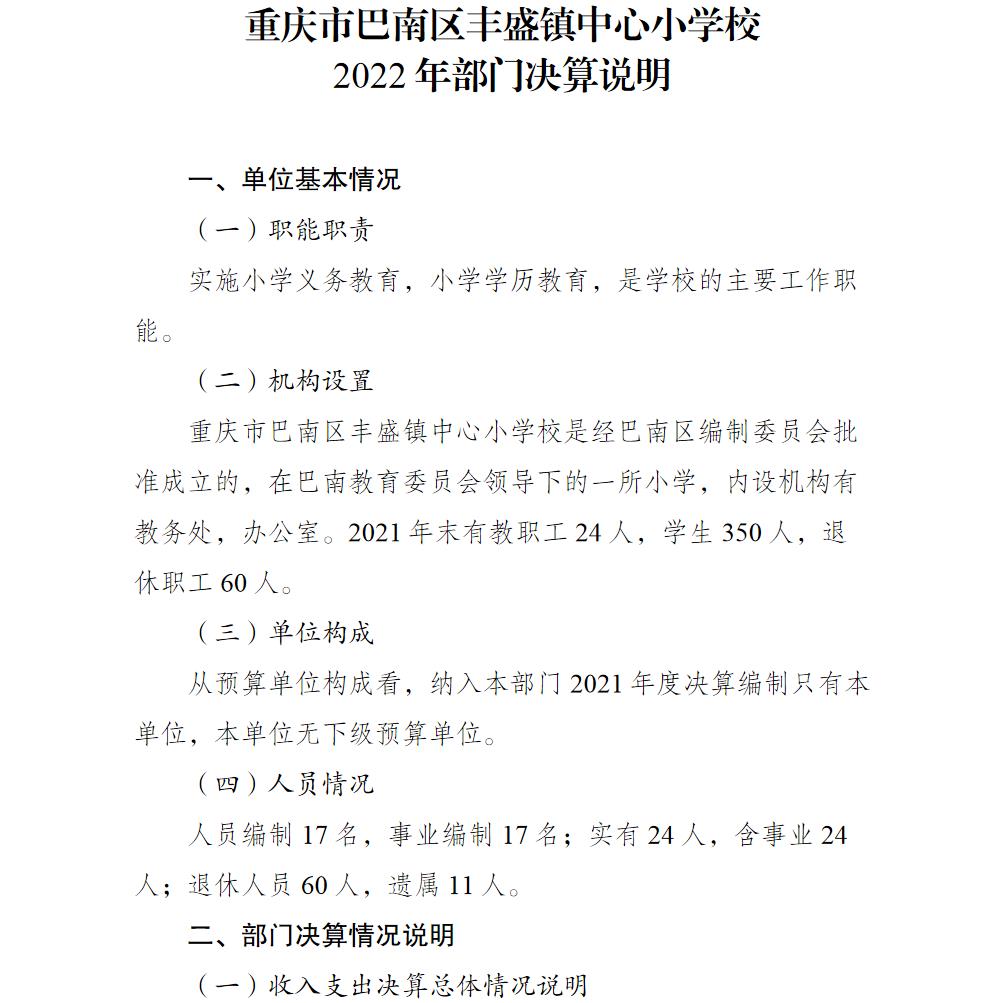 重庆市巴南区丰盛镇中心小学校2022年部门决算说明