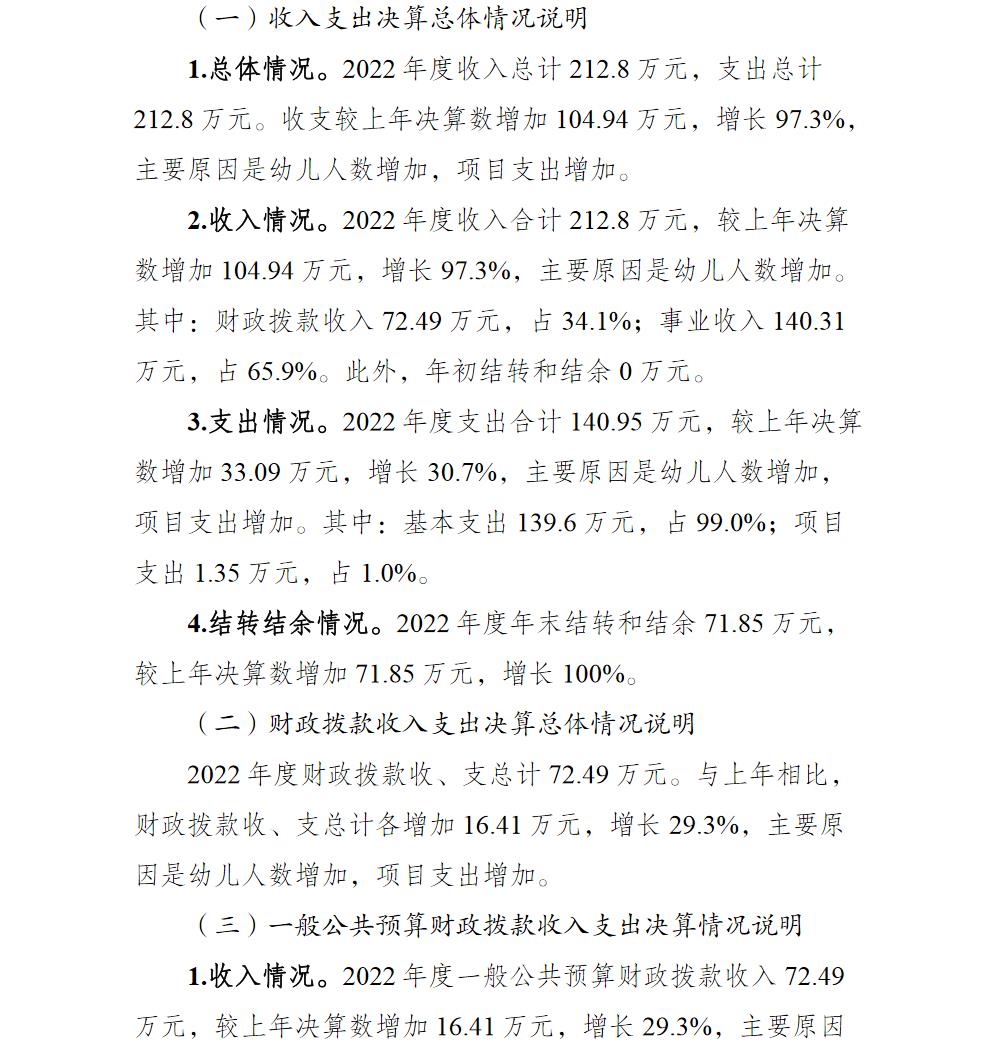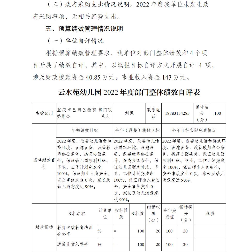 重庆市巴南区云水苑幼儿园2022年部门决算说明