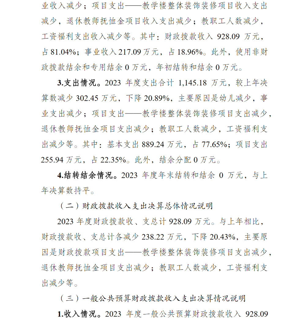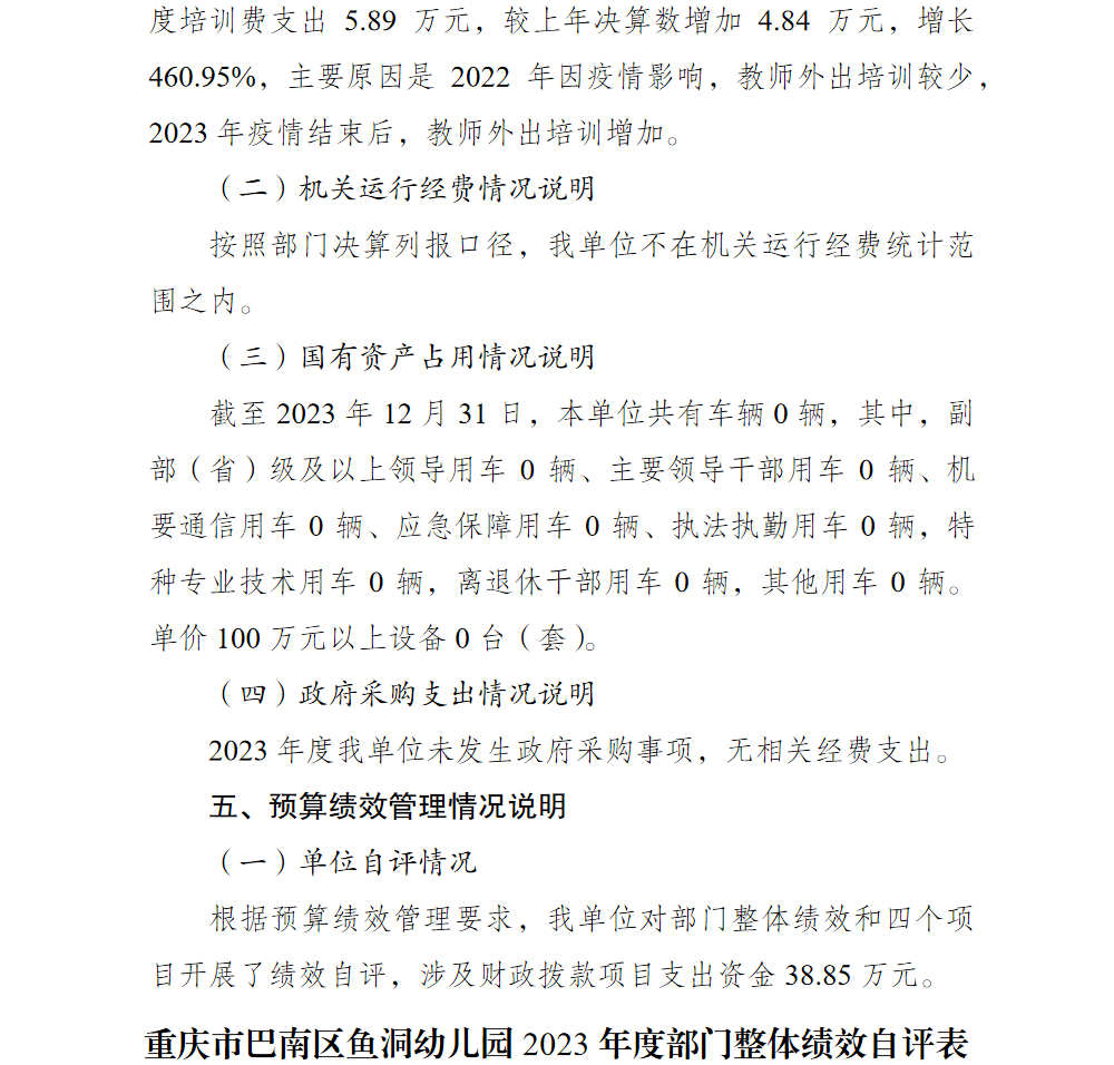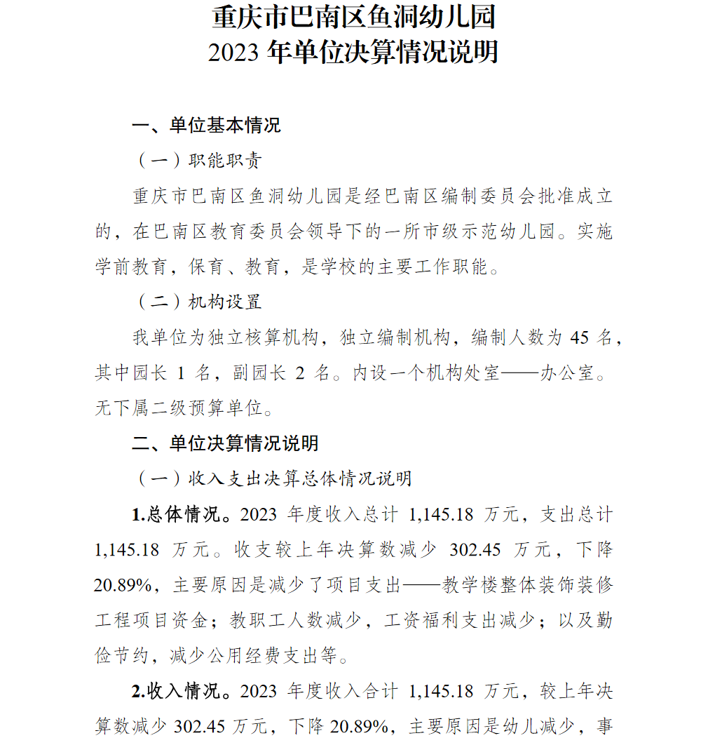 重庆市巴南区鱼洞幼儿园2023年单位决算情况说明